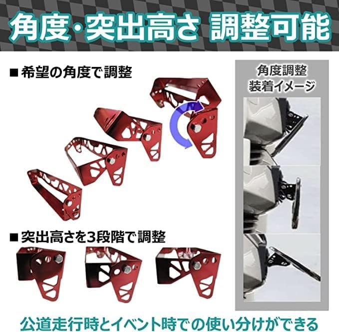 簡単調節:角度調節可能なナンバープレートステーです。愛車のナンバーフレームの角度、高さを簡単に調節でき、自分だけのナンバープレートに仕上げることができます。(汎用タイプ。軽自動車〜トラックまで様々な車に対応)