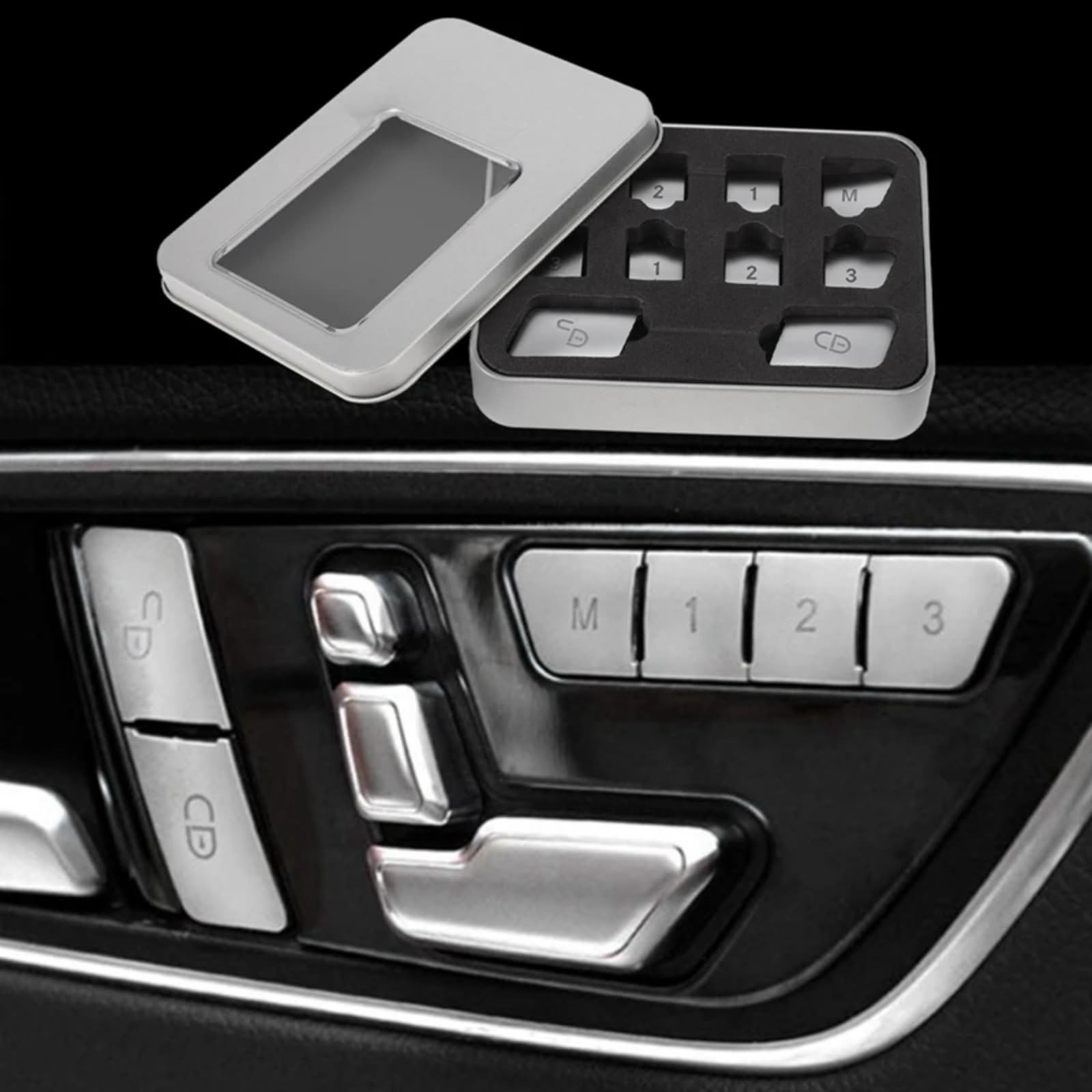車内ボタンデカール Compatible With CLA GLA GLK GLE CLS GL ML A B Eに適合。車のドアシートメモリロックボタンカバーステッカーインテリアステッカーアクセサリー。