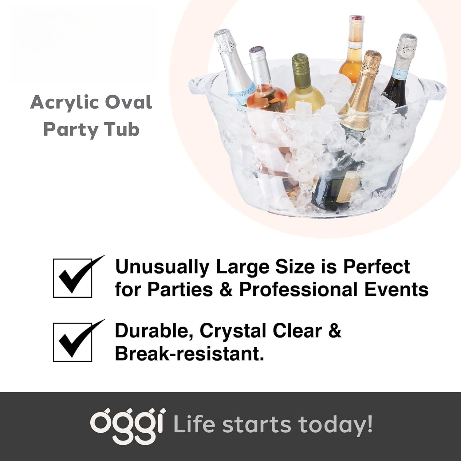 アクリル製オーバルパーティータブ - 透明飲料クーラー ハンドル付き ワインクーラー ビールチラー ドリンクに最適なパーティータブ 屋内外バー用アイスタブ使用 18.5インチ x 11インチ (L)