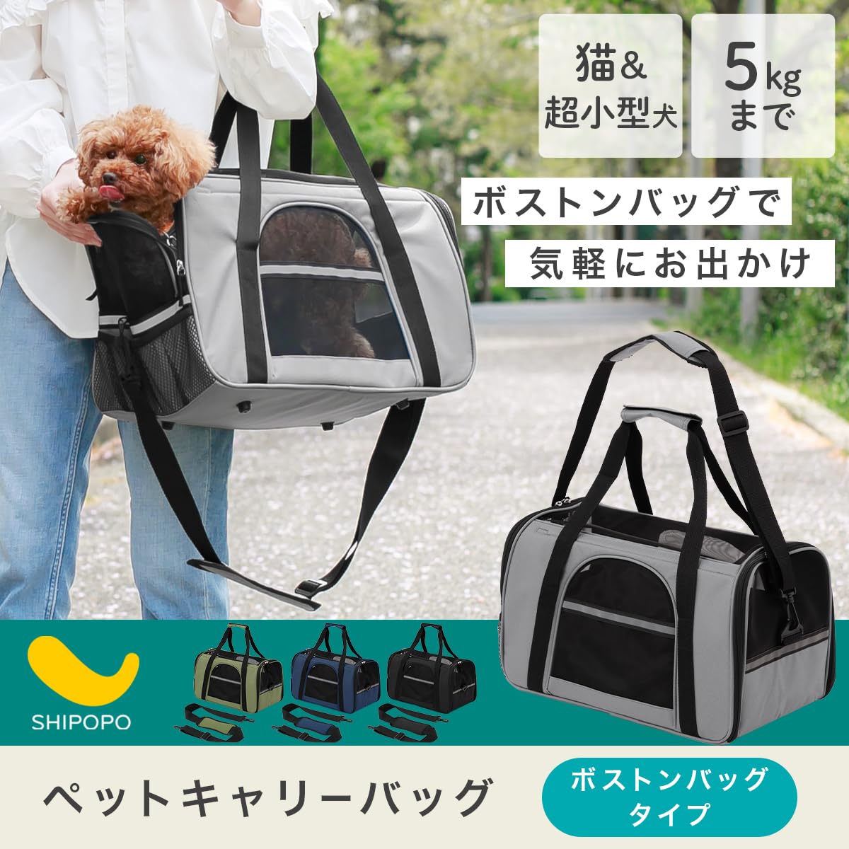 ぼん家具 ペットキャリーバッグ ボストン ショルダー 2WAY 超小型犬 猫 5kgまで 飛び出し防止 旅行 通院 避難 タブルファスナー SHIPOPO ネイビー