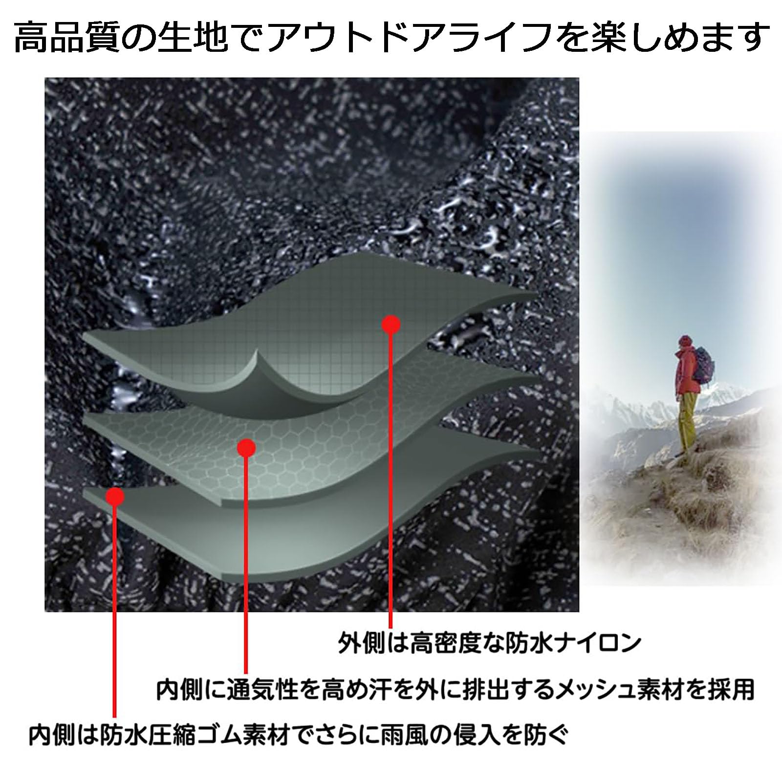 【高品質素材】上部の3層複合ナイロン生地と下部の500D防水オックスフォード生地を組み合わせており、外側の層は耐摩耗性と耐引裂性があり、内側には雨水が浸透しません。汗を発散させる層が体をドライで快適に保ちます。防水性と通気性のあるデザインにより、湿気の多い環境でも足をドライに保ち、アウトドア体験を向上させます。
