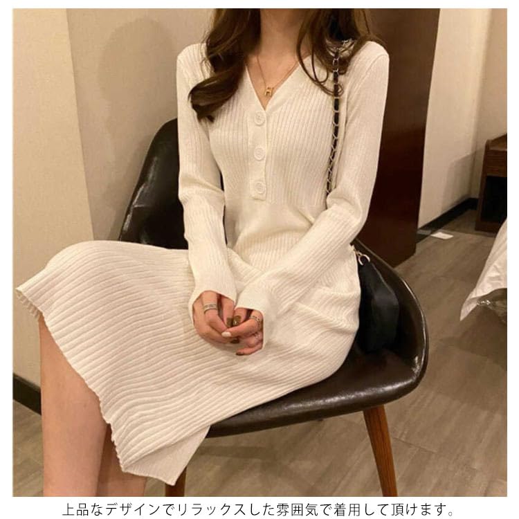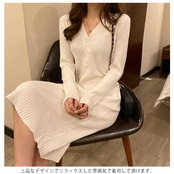 レーヨン<br>S:着丈102 バスト83 ウェスト47 肩幅35<br>M:着丈103 バスト84 ウェスト48 肩幅36<br>L:着丈104 バスト85 ウェスト49 肩幅37 <br>XL:着丈105 バスト86 ウェスト50 肩幅38 <br>※サイズ表の実寸法は商品によって1-3cm程度の誤差がある場合がございます。 <br>保温性と伸縮性を兼ね備えたふんわりとした暖かいなニット素材、肌馴染みが良く着心地抜群、ストレスフリーな着心地を叶えます。<br>様々なシーンでも大活躍、万能なニットワンピース。<br>1枚だけで気抜かりしない華やかなスタイルに、ウェスト仕様は切り替えデザインで程よいフィット感、肌に密着してしっかり防寒です。<br>丈は優雅なミモレ丈、綺麗めシルエながらも気になる体型をすっぼりカバーしてくれます。<br>上品なデザインでリラックスした雰囲気で着用して頂けます。