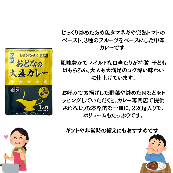 宮城製粉 レストラン仕様 おとなの大盛りカレー 220g×20個セット (20袋, 中辛)
