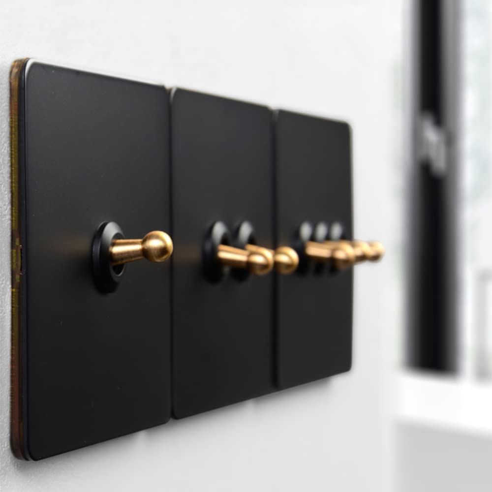 真鍮トグルスイッチプレート、トグルライトスイッチ、 銅レバー アンティーク ハンドメイド スイッチ 1-4 ギャング 2 ウェイ ブラック トグル ライト スイッチ ソリッド 86 タイプ 10A デュアル コントロール レバー トグル スイッチ(1 Gang)