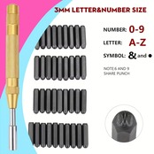 3mmの文字と数字のパンチングスタンプツールと2つの異なるシンボルパンチングスタンプツール。さまざまなエンボス加工や彫刻のニーズを満たすのに十分な量と形状。