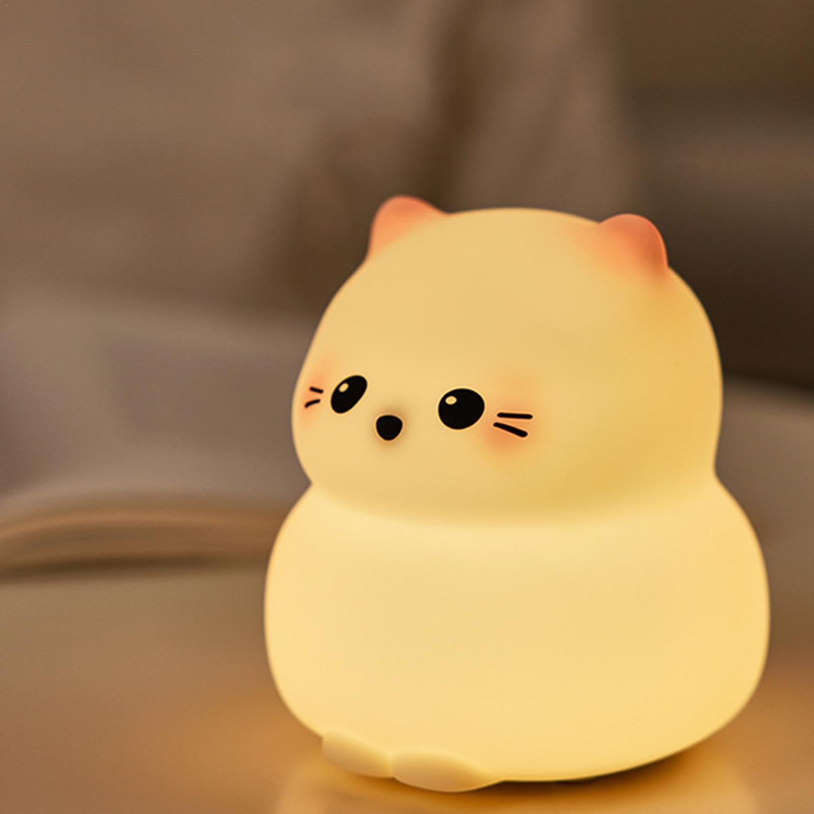 Description and Features:<br/><br/>Due to its compact size and lightweight construction, the night light is highly portable. It can easily be moved from 1 room to another or taken along when traveling. This portability adds to its convenience, allowing it to function as a night light at home or as a comforting companion during sleepovers and trips.<br/><br/>The LED technology used in the night light is energy-efficient, consuming minimal power while providing bright illumination. Additionally, the LED lights remain cool to the touch, making the lamp safe for use in children’s rooms and minimizing any risk of overheating. This energy efficiency and safety ensure that the lamp is both eco-friendly and child-safe.<br/><br/>Specification:<br/>Product name: touch Cat Night Light<br/>Weight: 160g<br/>Size: about 10x12.2x11cm/3.94x4.8x4.33 inches<br/>Material: ABS+pp+ silicone<br/>Usage/battery life: the brightest of the three gears is about 6h<br/>Battery capacity: 1200mAh<br/>Low power warning: low power, low light brightness, light directly out.<br/>Cable /USB cable length: 100cm<br/>Power input: DC 5V ⎓ 1A<br/>Packing: Carton<br/><br/>Packing List:<br/>1 x touch Cat Night Light<br/>1 x charging cable