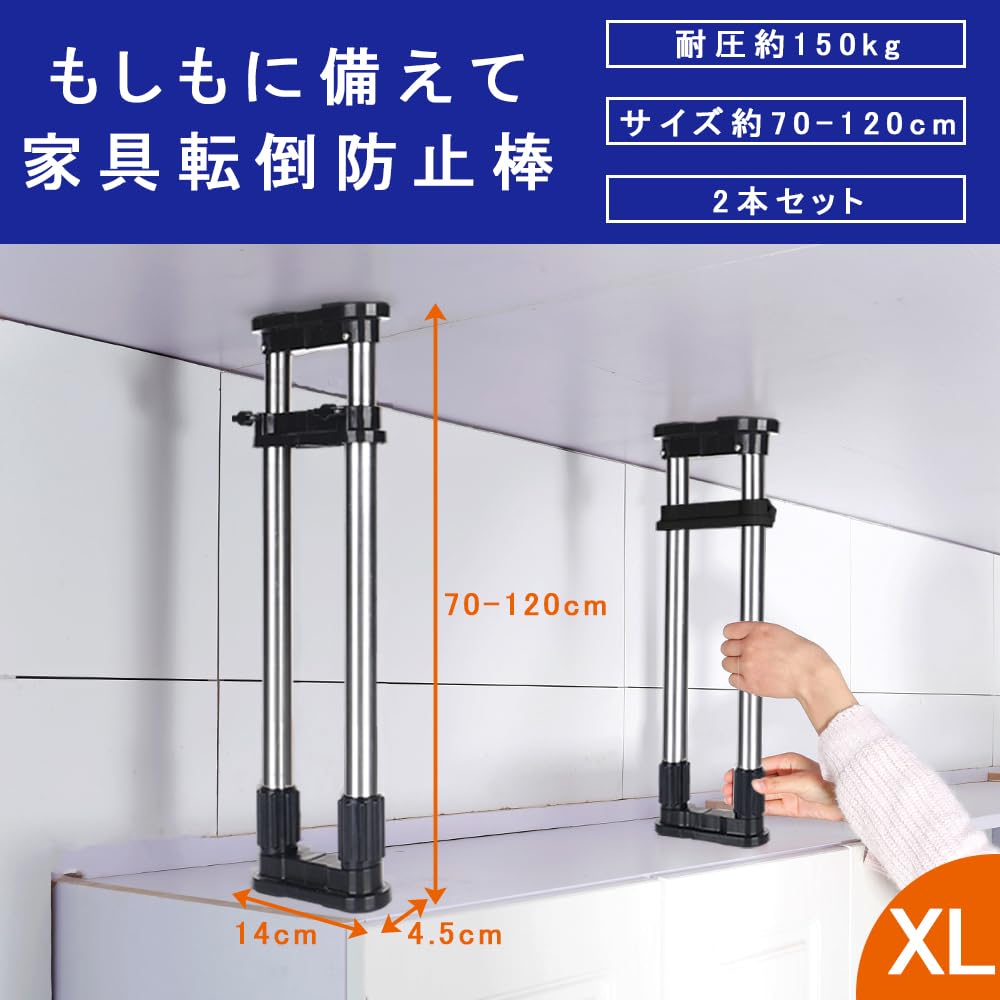 HORTDFang 家具転倒防止伸縮棒 転倒防止用 突っ張り棒 家具転倒防止ポール つっぱりポール 転倒防止 突っ張り棒 地震 耐震対策 強力 地震対策 防災グッズ 食器棚 冷蔵庫 家具 2本入り (ブラック, 70~120cm)