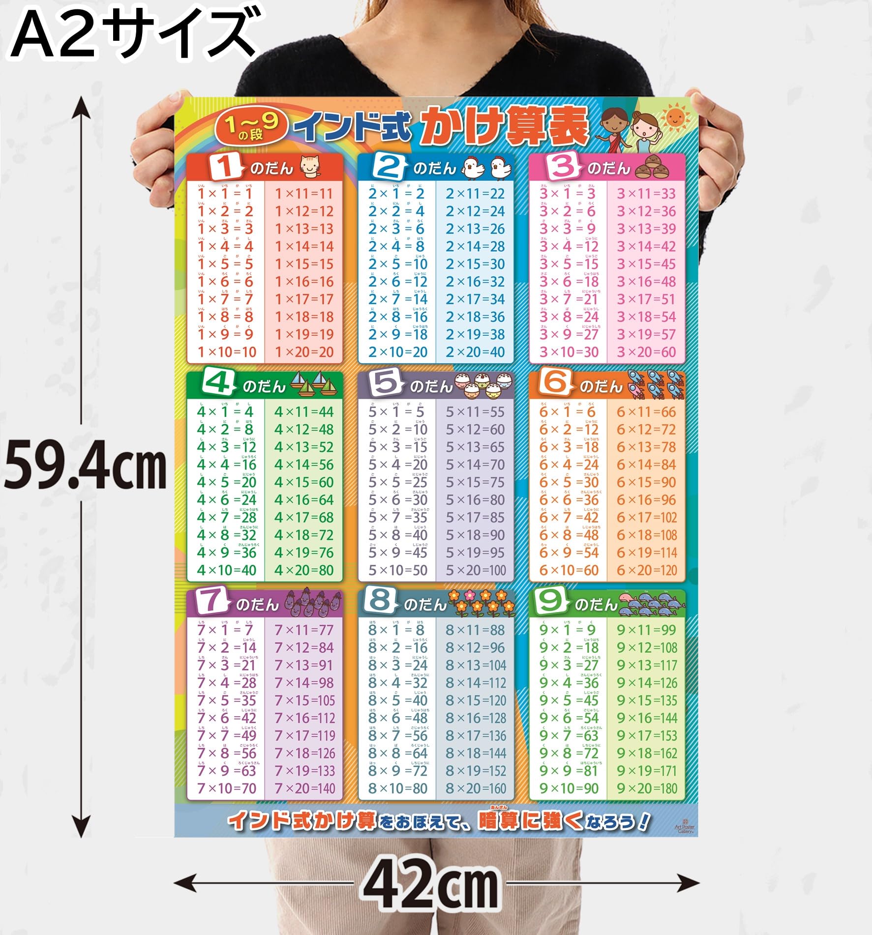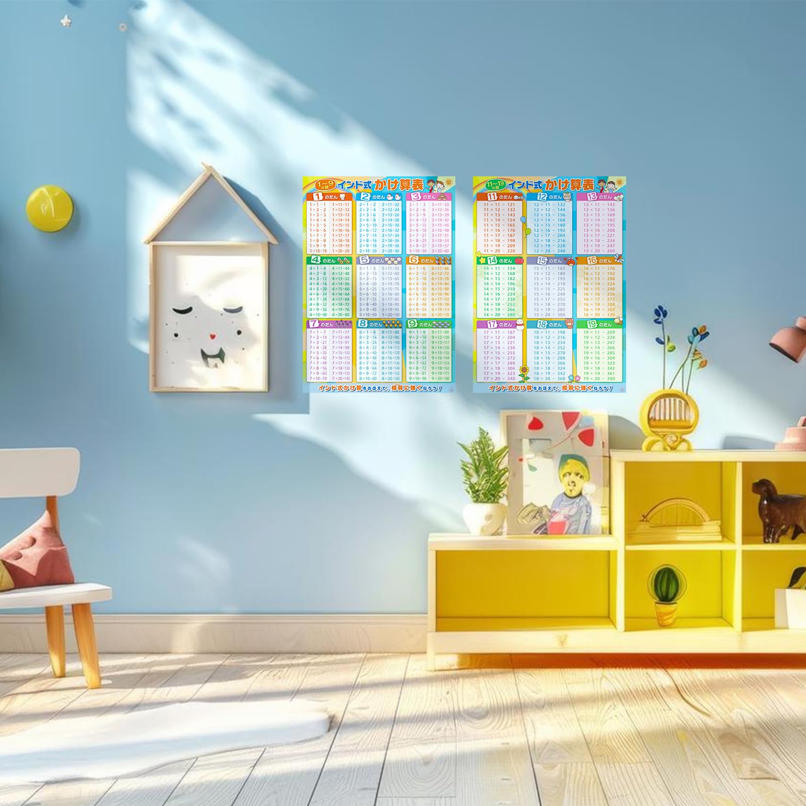 かけ算表 九九表 掛け算 インド式 2枚セット お風呂ポスター A2サイズ 数字 算数 知育 学習 おもちゃ 練習 小学校受験 幼児 学校 学習 学習ポスター 防水仕様 日本製
