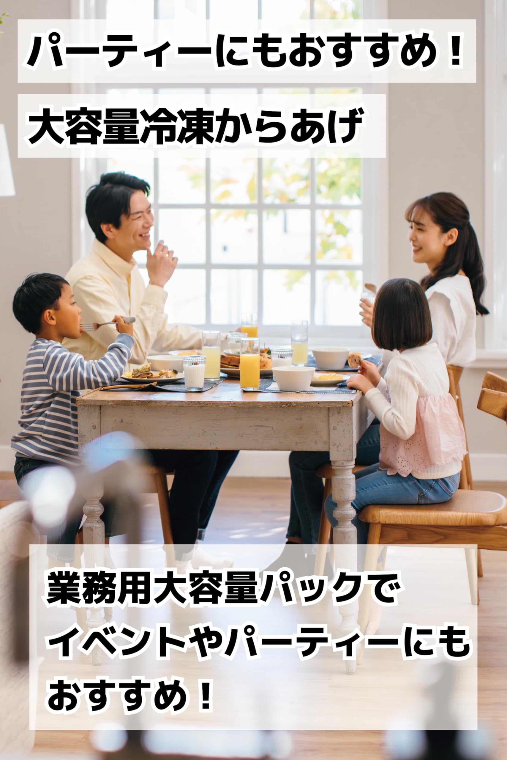 ✅【パーティーにもおすすめ!大容量冷凍から揚げ】業務用大容量パックなので、イベントやパーティーにもおすすめの冷凍から揚げです。家族や友人と揚げたてのから揚げをお楽しみいただけます!