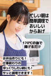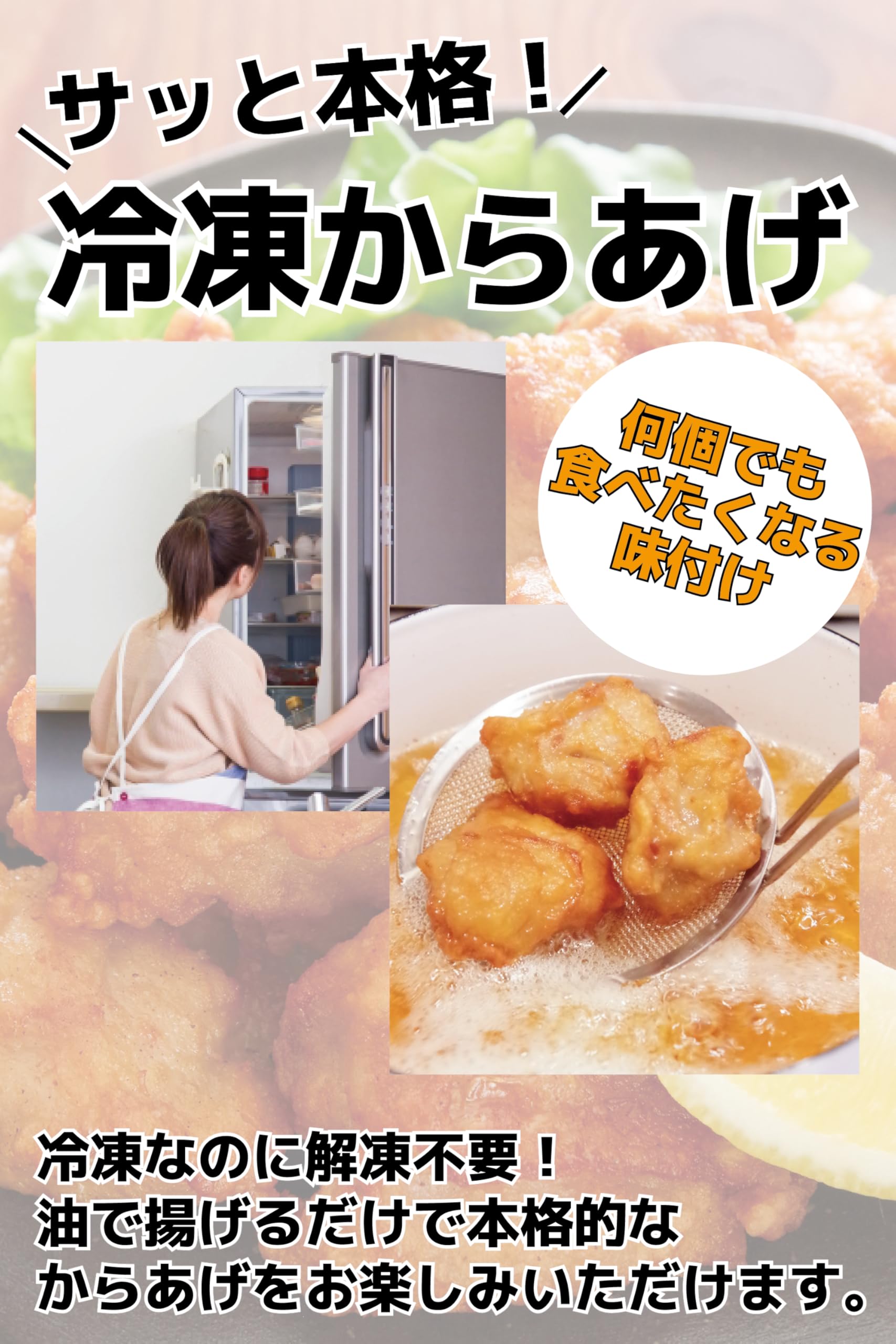 忙しい朝や夕飯の準備も、冷凍の唐揚げ(空揚げ)があれば安心!冷凍なのに解凍不要で油で揚げるだけなので、誰でも簡単に本格的な唐揚げ(空揚げ)をお楽しみいただけます。こちらのからあげは解凍不要です!170℃の油で揚げるだけなので、仕事終わりのゆっくりしたい時でもサッと調理できます。お弁当作りにもぴったりで忙しい毎日を、冷凍からあげで乗り切りましょう!