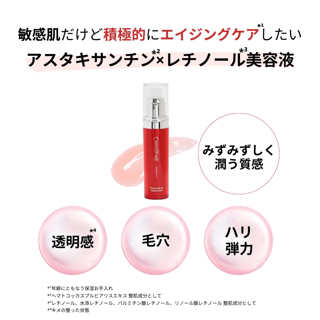 セララボ【セラシエル ヴィタセラムA(30mL)】レチノール美容液 純粋レチノール アスタキサンチン ナイアシンアミド エイジングケア 透明感 毛穴 ハリ 弾力 敏感肌 ビタミン かずのすけ開発 CeraLabo【CeraShell Vita Serum A】