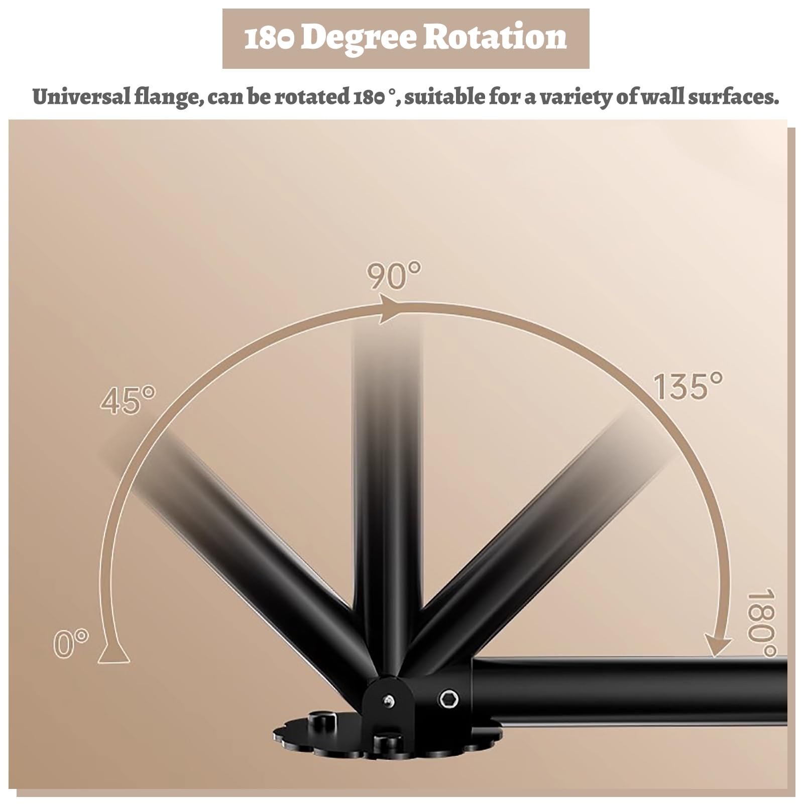 【金属製ユニバーサルフランジヘッド】:ユニバーサルヘッドを備えたワードローブブラケットは、180度回転でき、さまざまな壁面に適応し、傾斜した壁にも取り付けることができます。接着剤または穴あけ方法を使用できます
