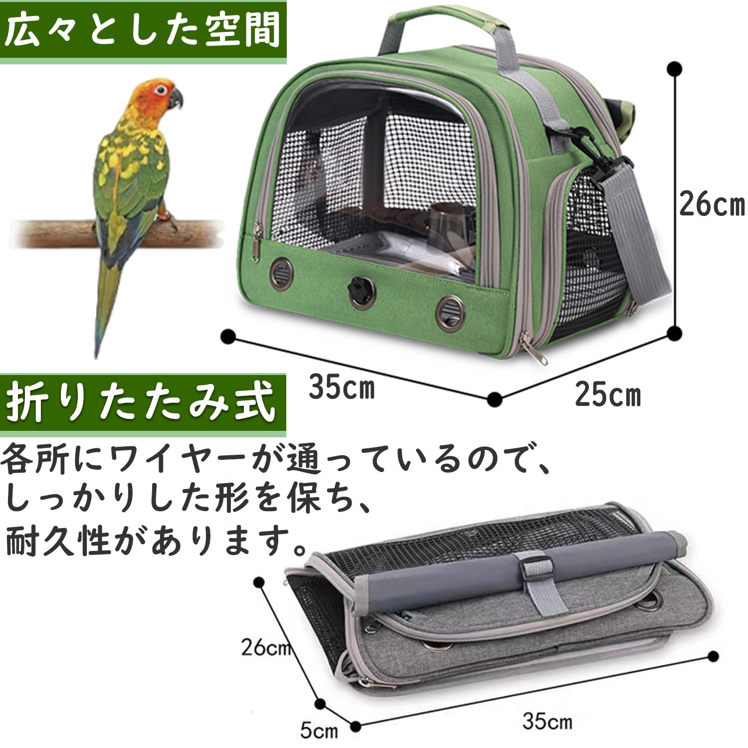 【改良モデル】Hopeholic 鳥 キャリー 移動用ケージ 手提げ/肩掛け インコ 文鳥 手乗り キャリー リュック 止まり木付き 餌入れ 鳥 バード ケージ キャリーケース 持ち運び 散歩 避難 通院 おでかけ 鳥かご 移動用 折りたたみ式 グリーン