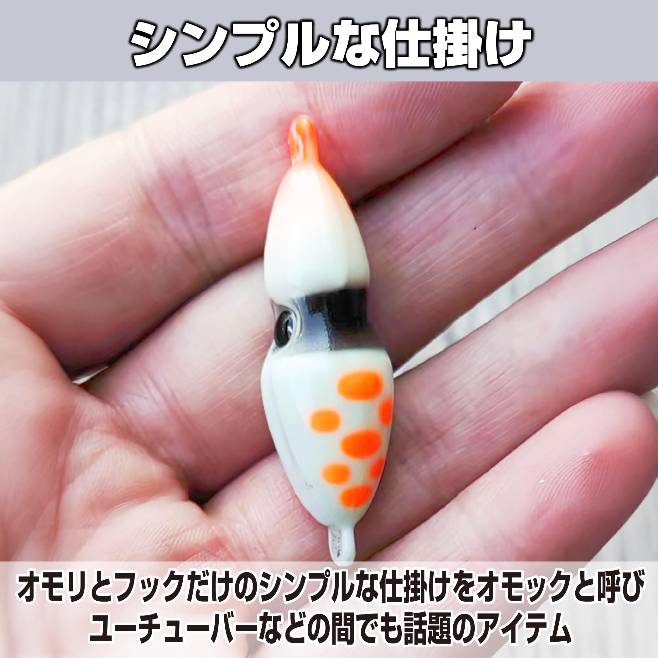 こだわりの詰まったデザインで釣果アップ:本製品には光を当てることで発光する夜光塗料を使用しています。艶やかで魅力的な流線型ボディに加え、くびれ部分の魚眼もヒットを誘います。夜間や活性の低い時でも、こちらのオモックを使えば釣果アップを狙えます。