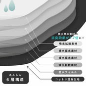 「吸水ショーツ」と聞いてイメージする分厚さ、仰々しさ、手間や使い心地の心配。 そのひとつひとつを丁寧に解決して生まれたのがhinna 吸水型サニタリーショーツです。 ショーツ自身も吸水部分も限りなくミニマムに、目指したのは“ふつうのシームレスショーツ”のヌーディ感。 さらっと柔らかな綿混生地が、縫い目もテープもないシンプルな構造で身体をぴたっと包みます。 吸水パッドはデイリーよりも1層多い6層構造。さらにデイリーよりも股上が3cm深くなって、おへそもすっぽり覆う丈に。 多い日や夜でも安心できるカバー力になっています。 30~40mlと心強い吸水力を確保しつつ、サッと素早く吸い込んで、2日履いてもさらっとした履き心地をキープ。 吸水ショーツを履いていることを忘れるような快適さを追及しました。
