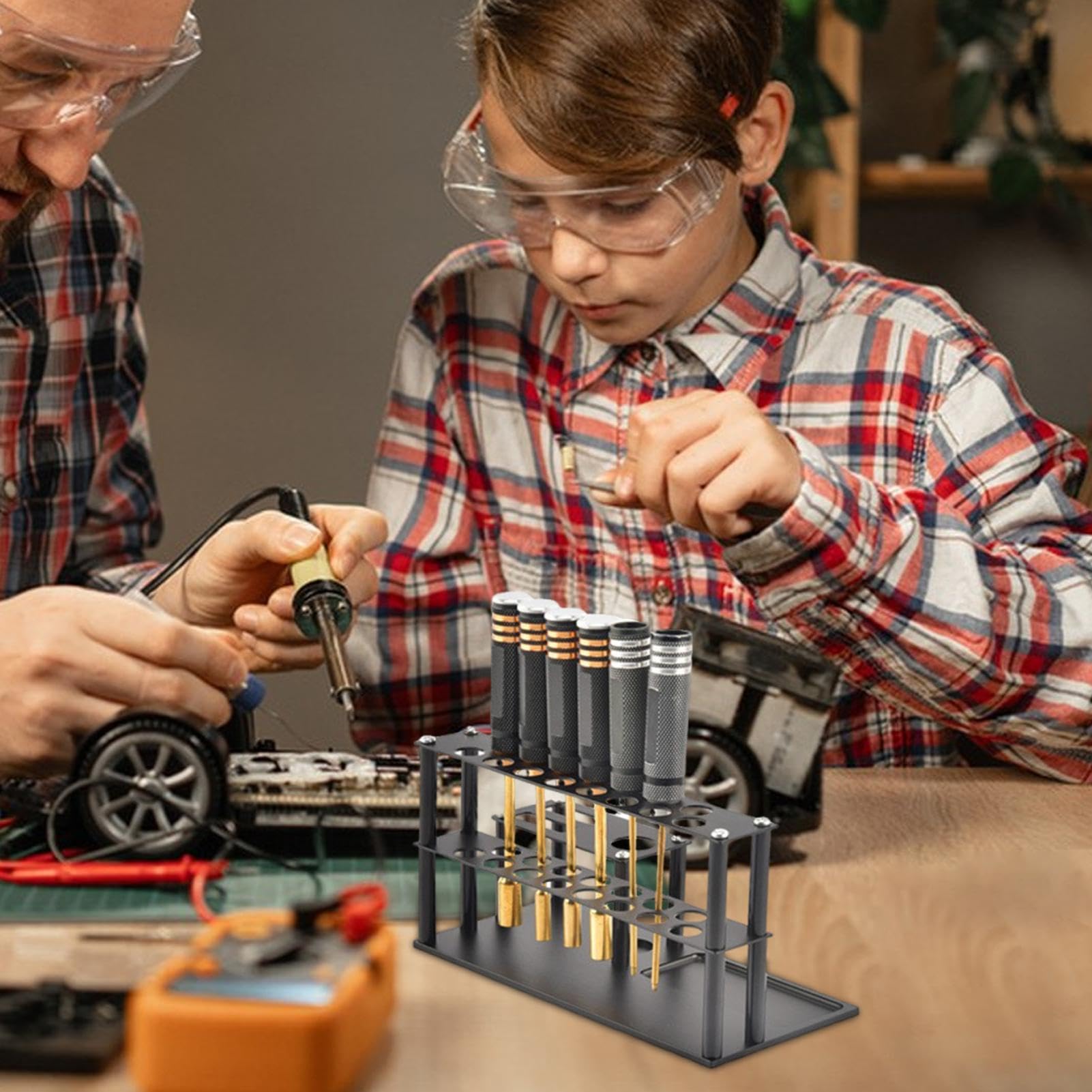 デスクトップ用ドライバー収納ラック、モデルカーメンテナンスツールホルダー、航空機モデルドライバー収納ラック、リモコンカーメンテナンスツール収納ララジコン カー ツール オーガナイザーネジトレイ付き模型飛行機ドライバー収納ラック | Rcカーツールオーガナイザー, モデルカー修理ツールラックドライバーツールホルダー、ドライバーホルダーオーガナイザー、プライヤー、はさみ用ドライバーセットオーガナイザー