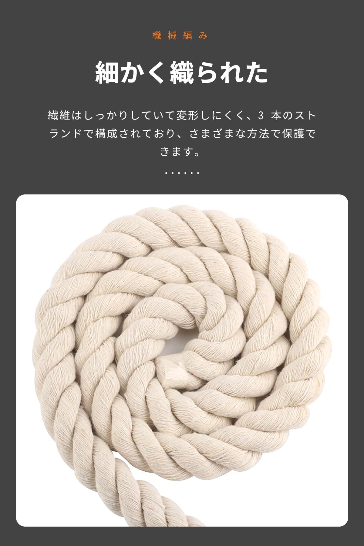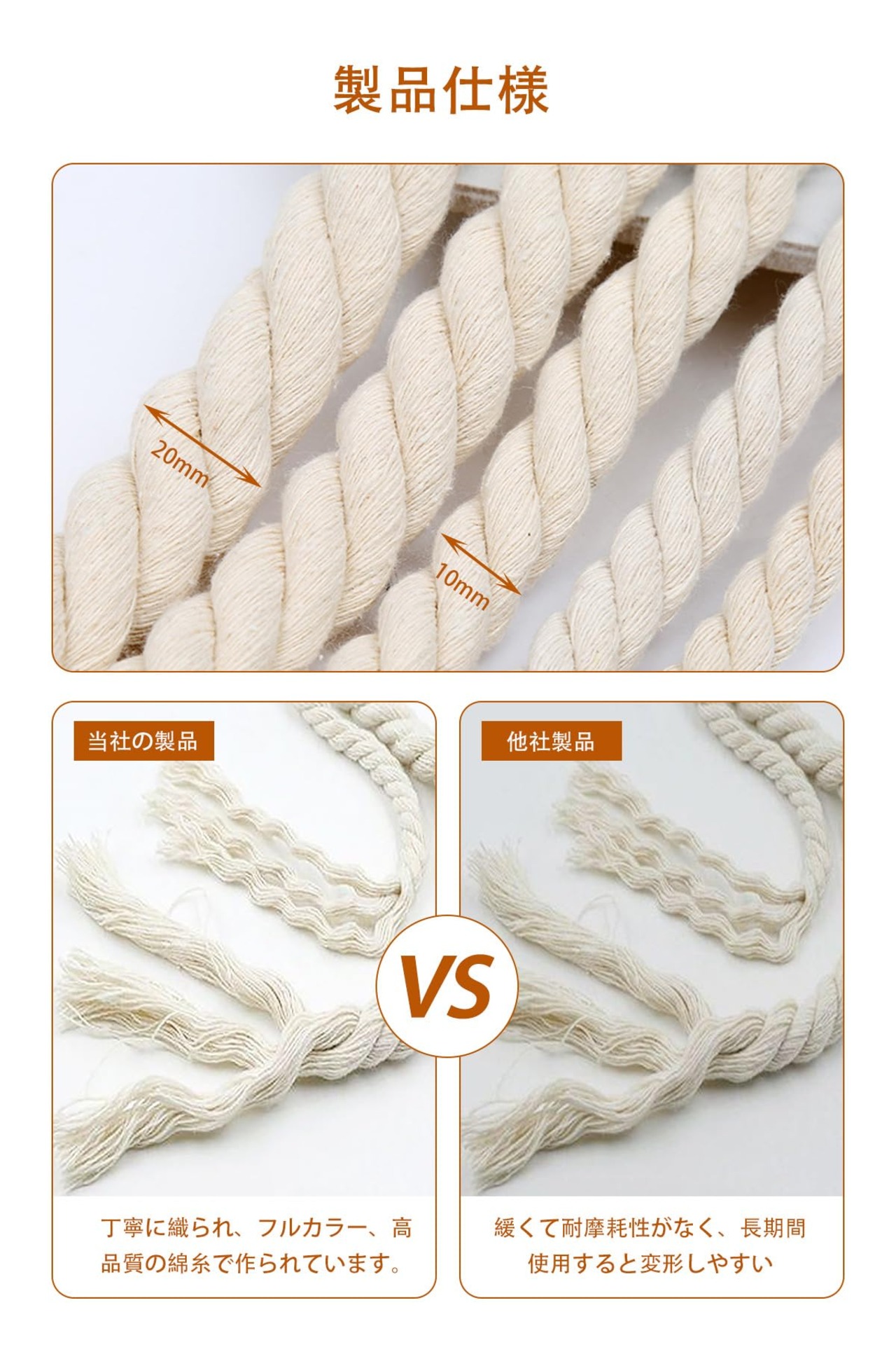 【優れた素材】この製品は、耐熱性と耐摩擦性の天然繊維で作られた3本ストランドコットンロープで構成されており、自然で環境に優しいです。 「スリーストランド」は3本のストランドをより合わせたスタンダードなロープの結束方法で、強度に優れています。そしてある程度の靭性があり、天候や温度の影響で変形することがありません。天然繊維なので、水や土の中で腐食し土に還りますが、環境を汚染しません。