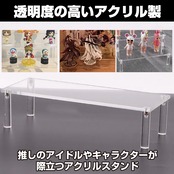 透明度の高いアクリル製:コレクションしているフィギュアや小物などをお部屋に飾りたい時にご活用いただける透明度の高いアクリル製のディスプレイスタンドです。推しのアイドルやキャラクターのアクリルスタンドなどを飾りたい時にぜひ活用してみてください。