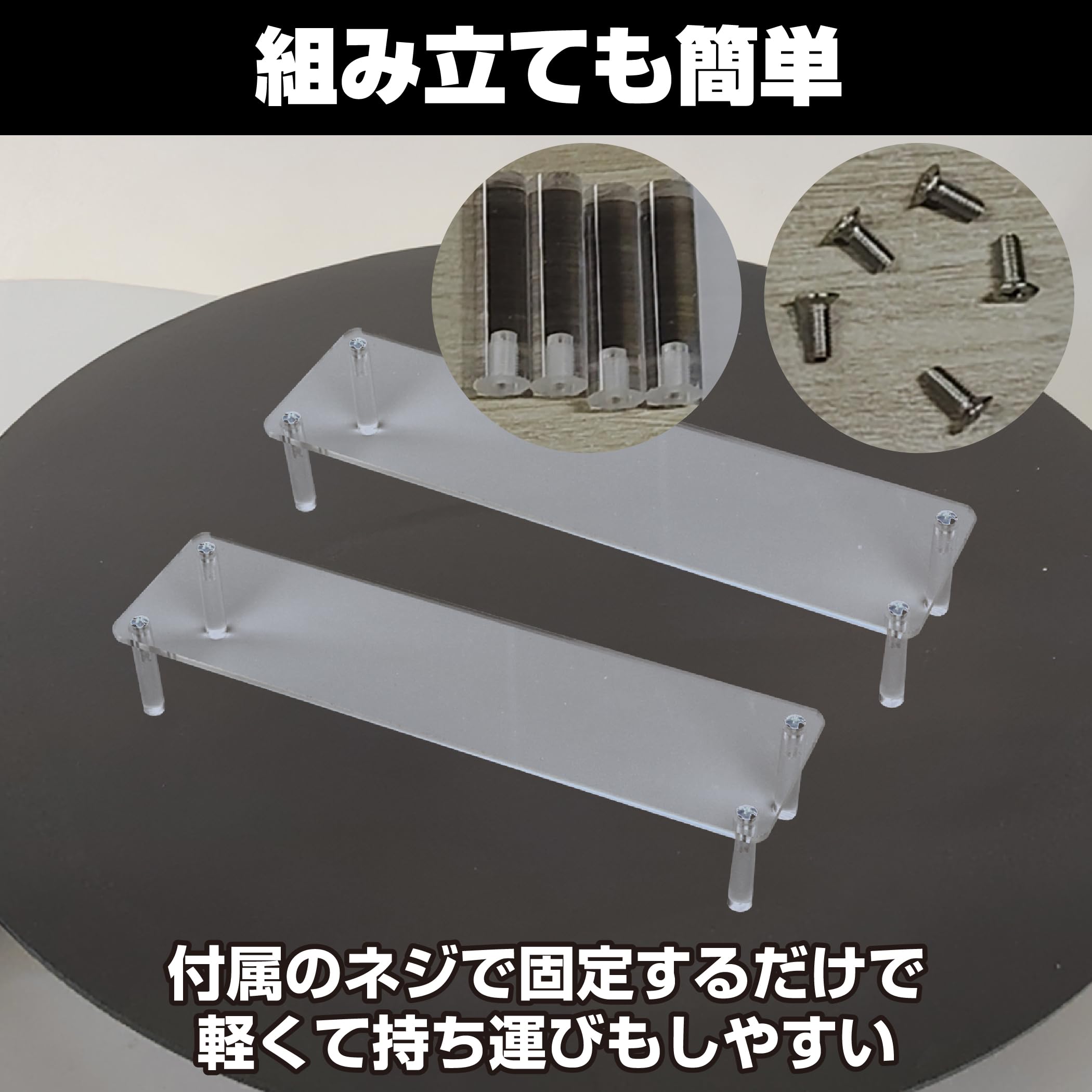 組み立ても簡単:付属のネジで固定するだけですので、簡単に組み立てることができます。軽くて持ち運びもしやすいので、飾る場所を変えやすいです。※表面に傷防止のフィルムが付いておりますので、剥がしてからご使用ください。
