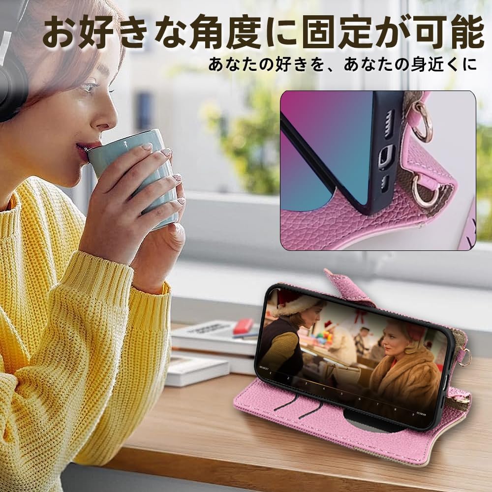 Google Pixel 6A ケース 手帳型 ショルダー グーグル ピクセル6A カバー 財布型 肩掛け 横+縦 2掛け方 斜めがけ 化粧鏡付き おしゃれ ジッパー小銭入れ カード収納 横置き ロングストラップ 耐汚れ PUレザー 防指紋 高耐久性 女性用 贈り物 COCOCLOUD ピンク