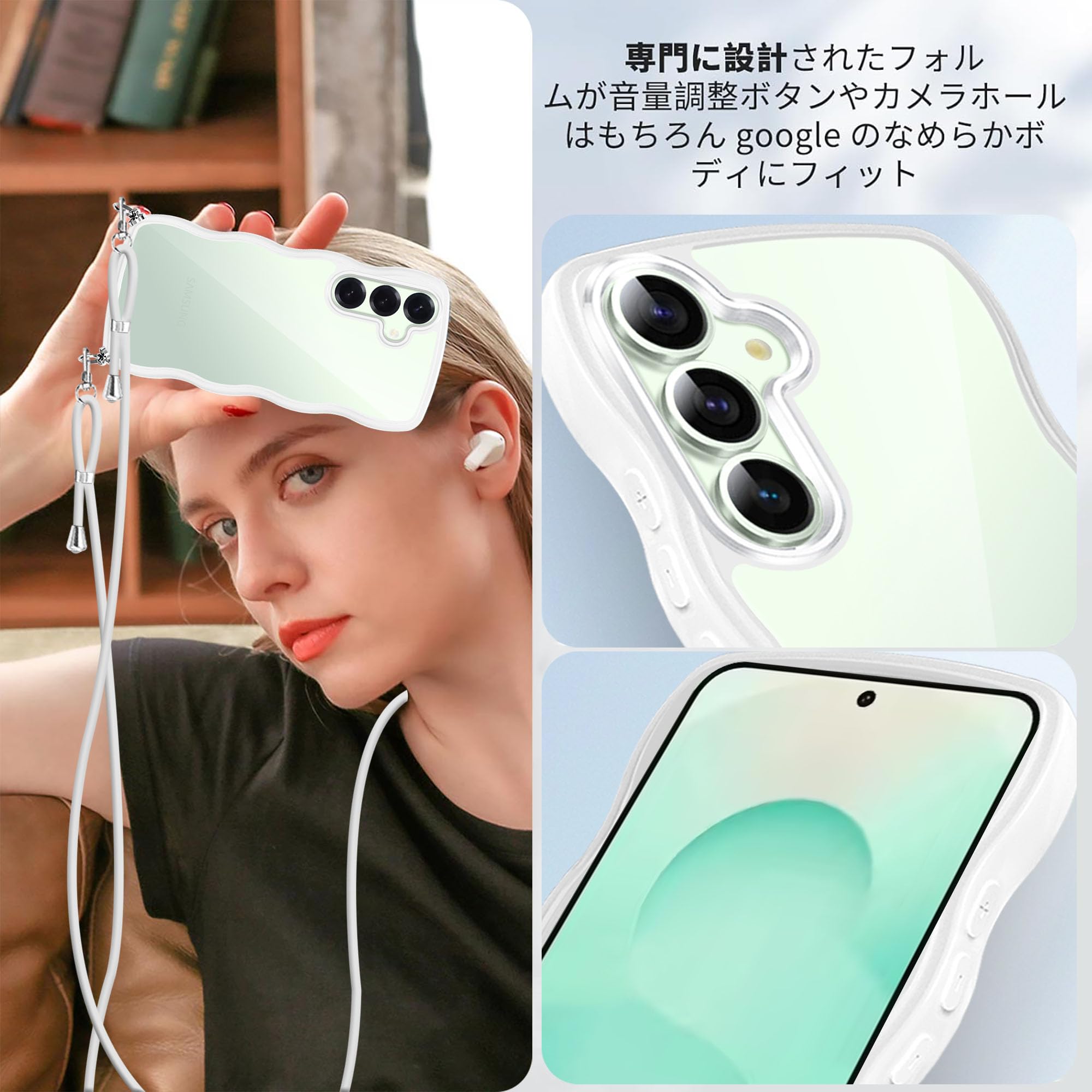 Galaxy S25 ケース クリア ショルダー SC-51F スマホケース ス ストラップ付き ギャラクシーS25 カバー 耐衝撃 透明 かわいい 人気 薄型 軽量 首かけ 肩掛け 縄掛けケー 取り外し可能 長さ調整可能 ワイヤレス充電対応(ホワイト)