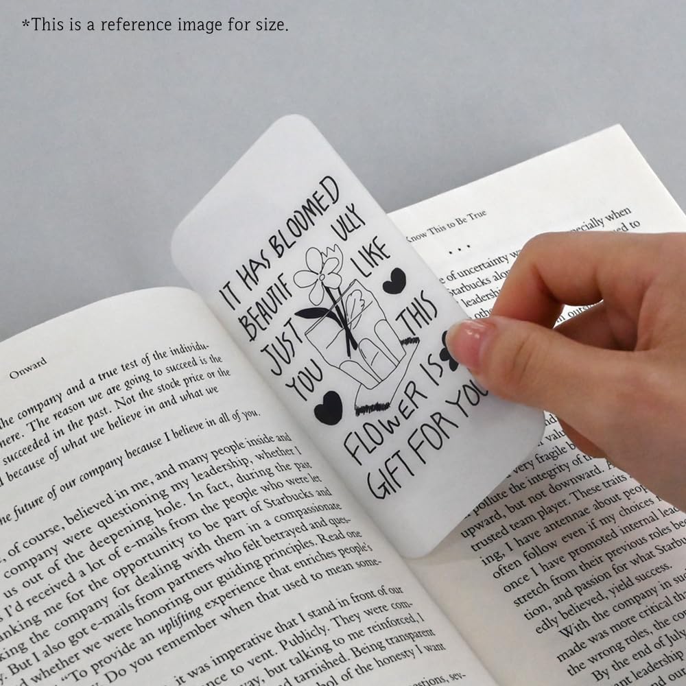 【アクリル素材】 アクリル素材で作られており、厚みがあり耐久性に優れています。優れた防水性を備えており、変形や破損、汚れに強い特徴があります。半透明な質感は本の文字を透かして見せることができ、感傷的で美しい雰囲気を演出します。
