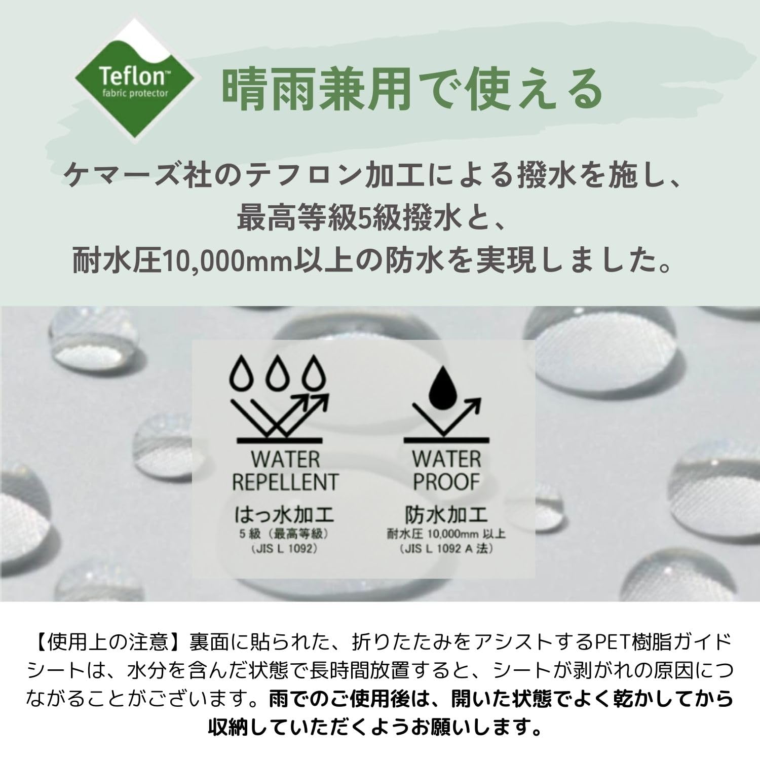 【畳みやすい】生地の裏側に圧着した透明の特殊形状のシートが、傘の畳みしわのガイドになり、折り畳みをアシストします。