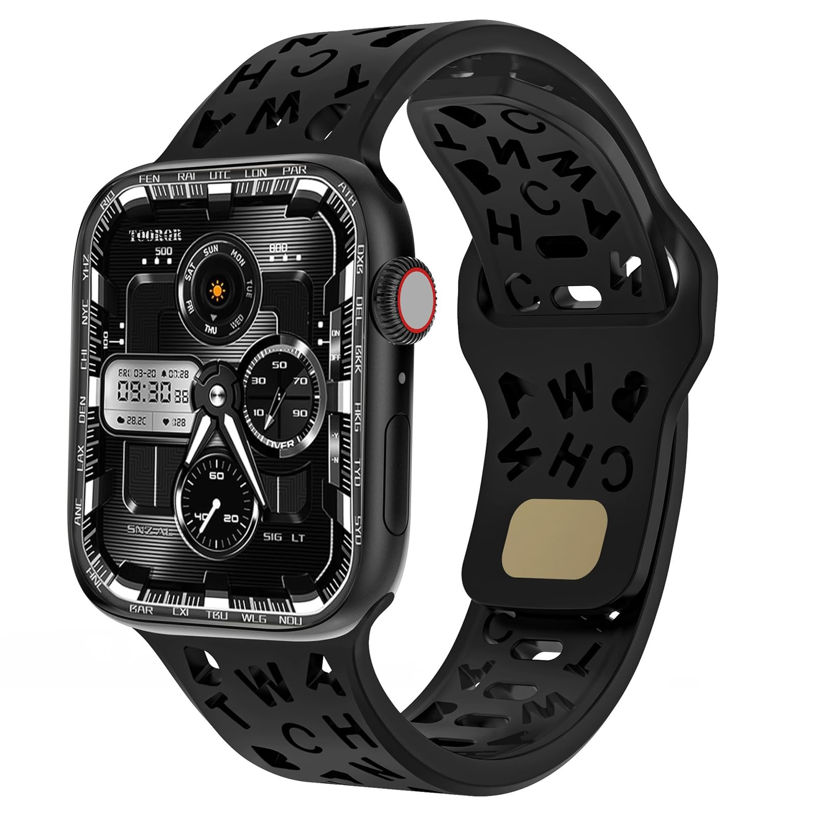 TOORQR コンパチブル iWatch バンド アップルウォッチ バンド 英字スタイルの中空デザインシリコン製のApple Watch ベルト 49mm 46mm 45mm 44mm 42mm 41mm 40mm 38mm 通気 シリコン交換ベルト 防汗 防水 Ultra2/Ultra 10 9 8 7 6 5 4 3 2 1 SE に対応 (49/46/45/44/42mm,ブラック)