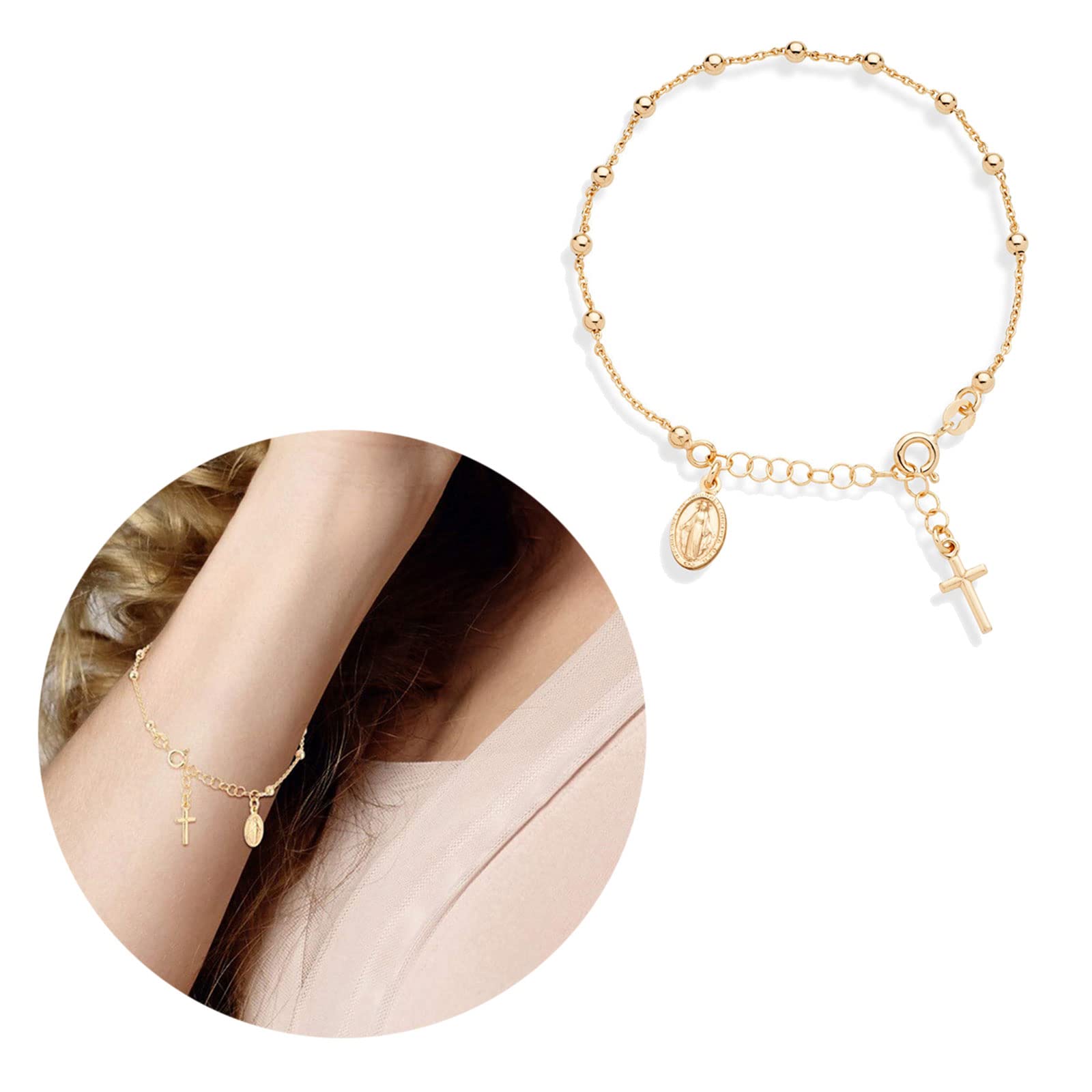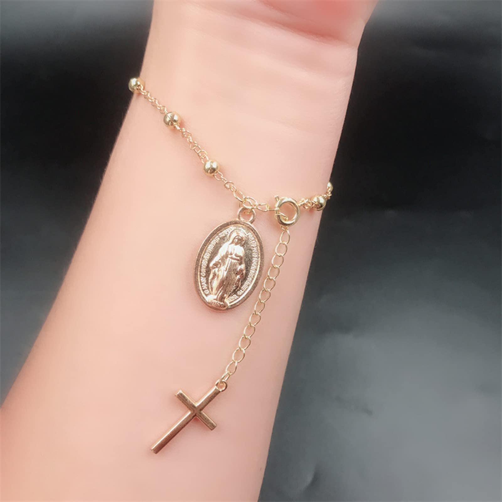 [AOMEIJIE] カトリック宗教金属丸ビーズブレスレットロザリオセンターピースメアリーマーシーイエス聖アイコンジュエリーの神聖な心