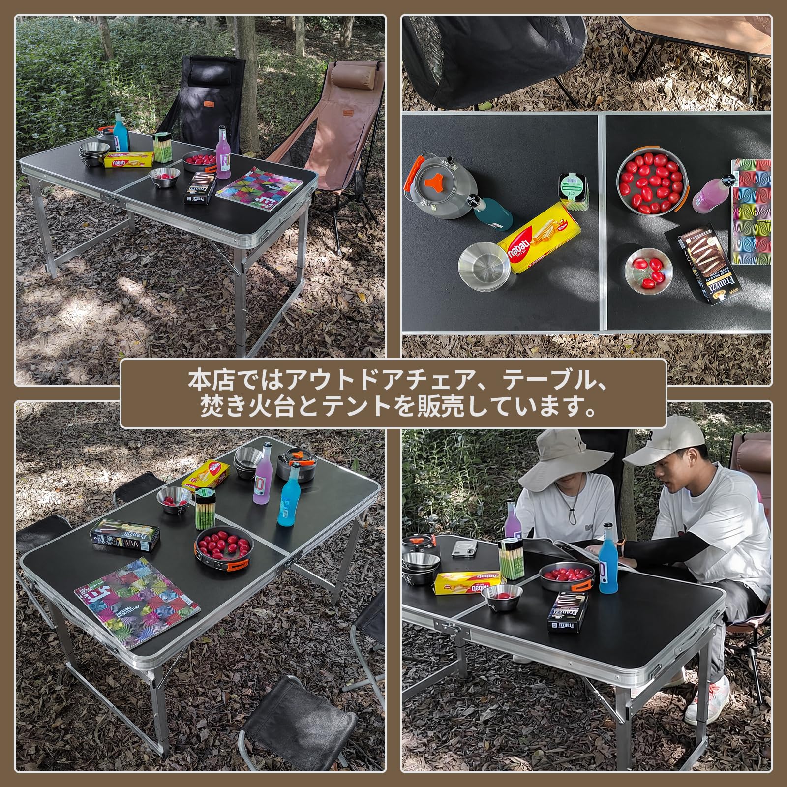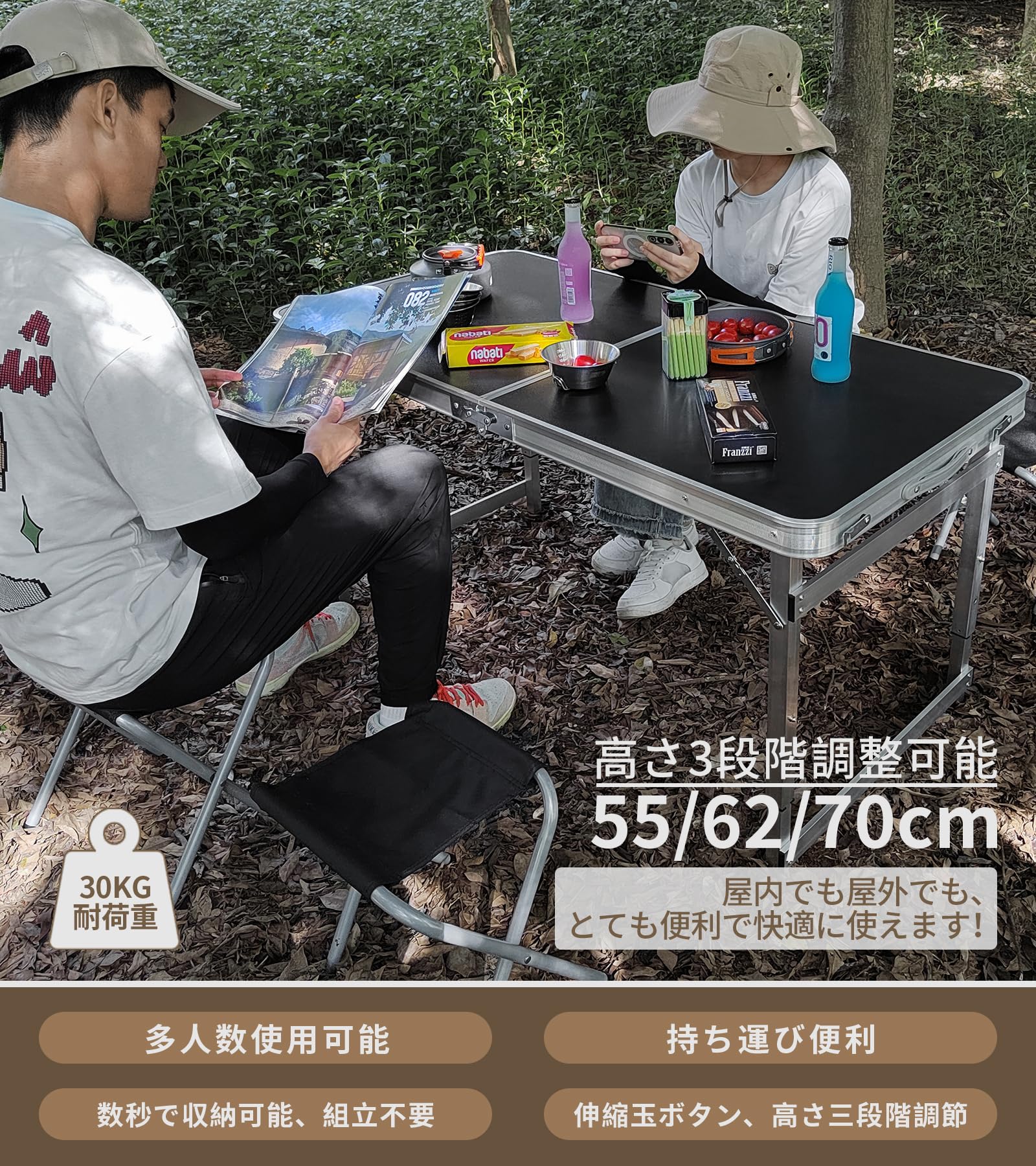 【日本企業】アウトドア テーブル キャンプ テーブル 折りたたみ 高さ3段階調整可能 120×60×(55-62-70)cm ピクニック レジャー キャンプ用 FG 耐荷重30kg (ブラック,セット)