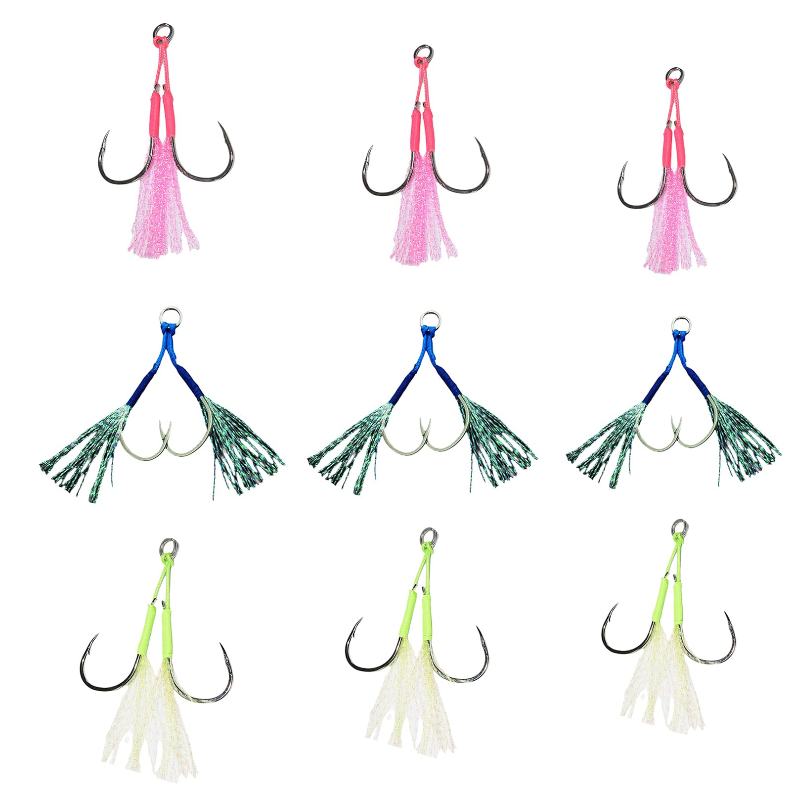 20PCSダブルフィッシングアシストフックキット小サイズジグジギングフックスローすぐに落ちるジグ釣りフック使い