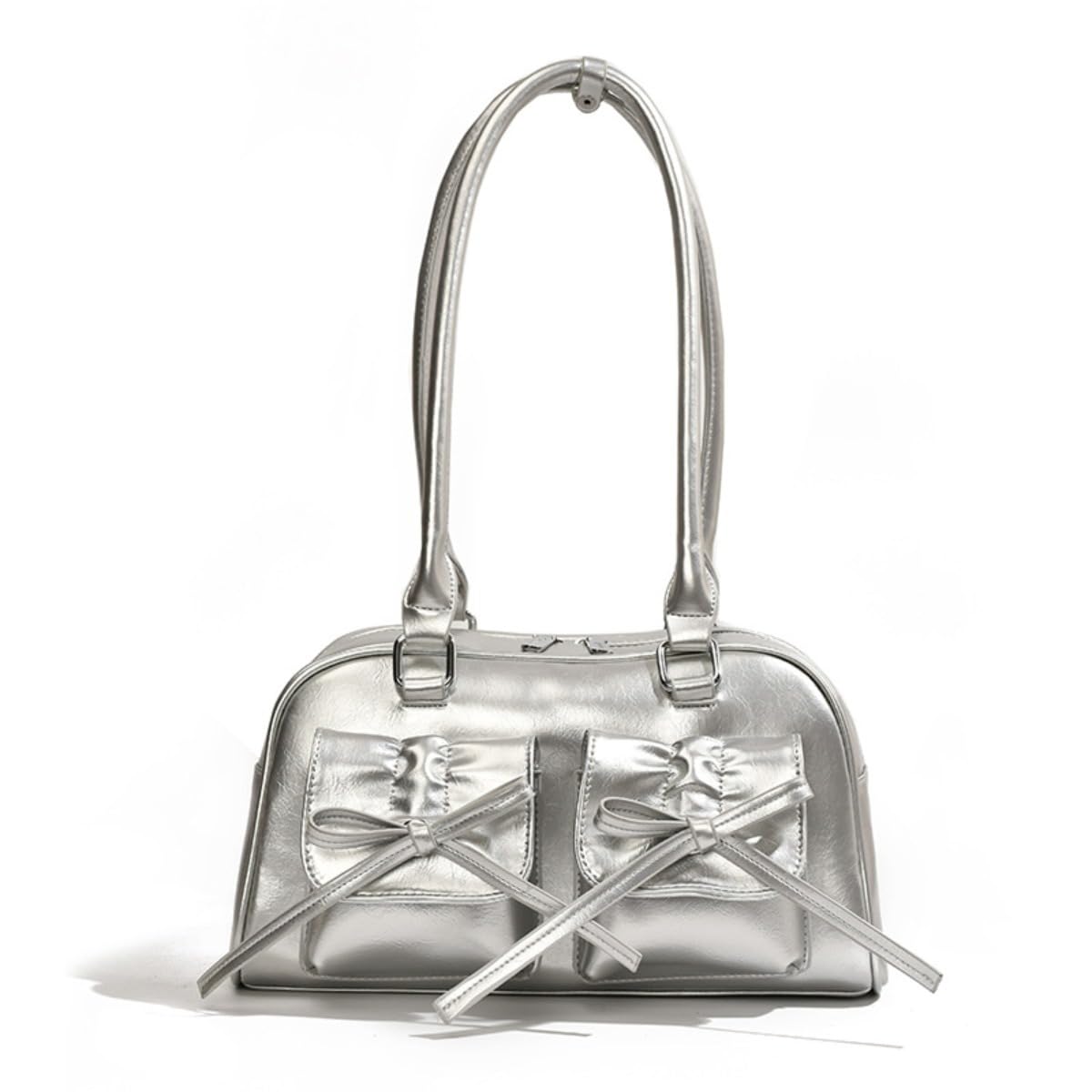 [Uranus] ハンドバッグ レディース PUレザー ちょう結び Y2K かわいい 肩掛け 手提げ 軽量 おしゃれ ショルダーバッグ 財布 レッド (シルバー)