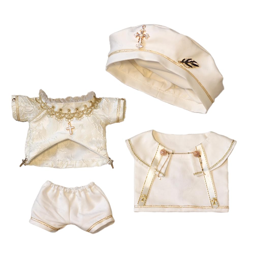 4点セット 10cm 20cm ぬいぐるみ用洋服セット、洗礼式コスチューム、帽子・トップス・ショートパンツ付き、白、 赤 (白, 20cm) [並行輸入品]