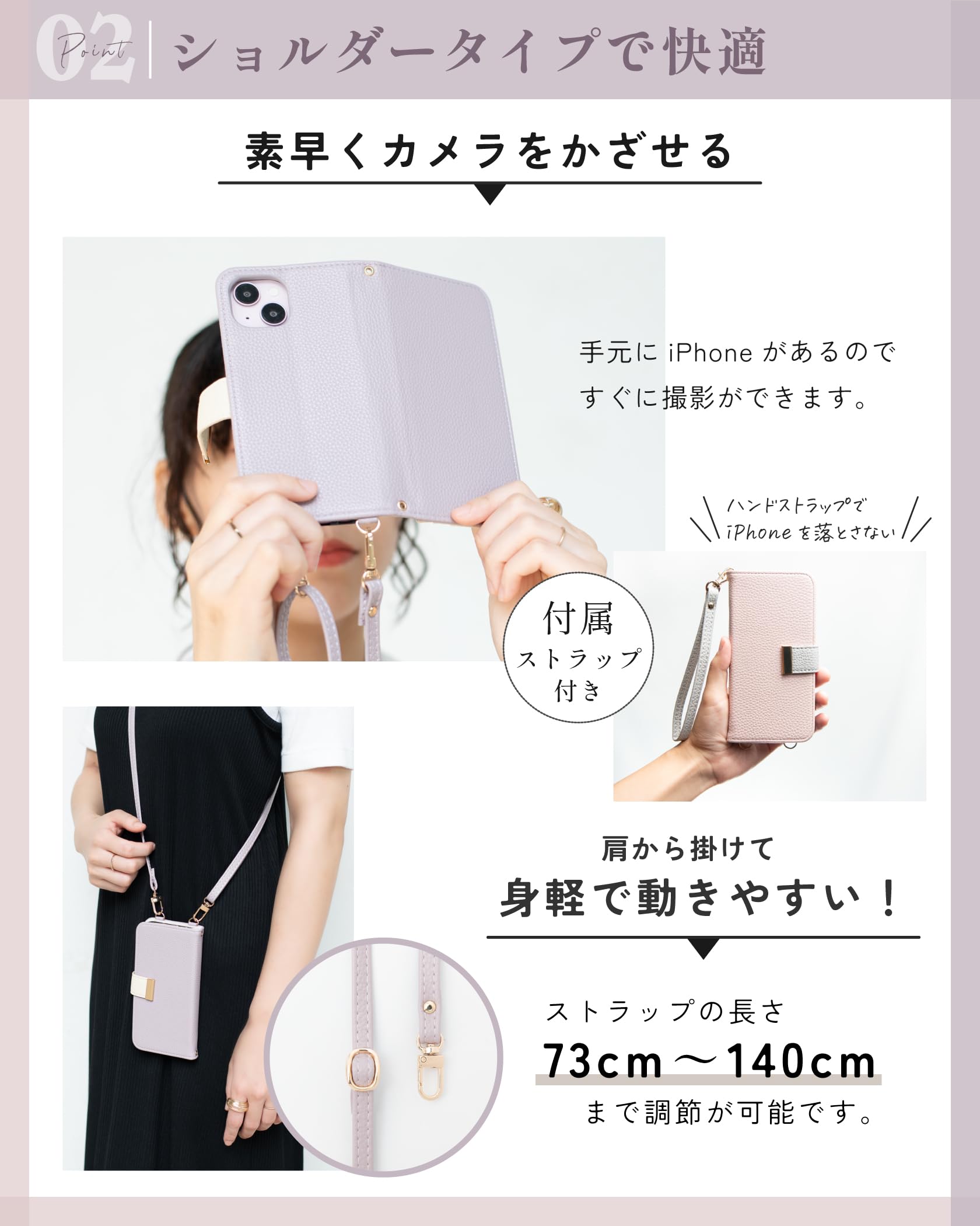 ✅【ショルダータイプで快適】素早くカメラをかざせる。肩から掛けて身軽で動きやすい!ストラップの長さ73〜140cmまで調節が可能です。