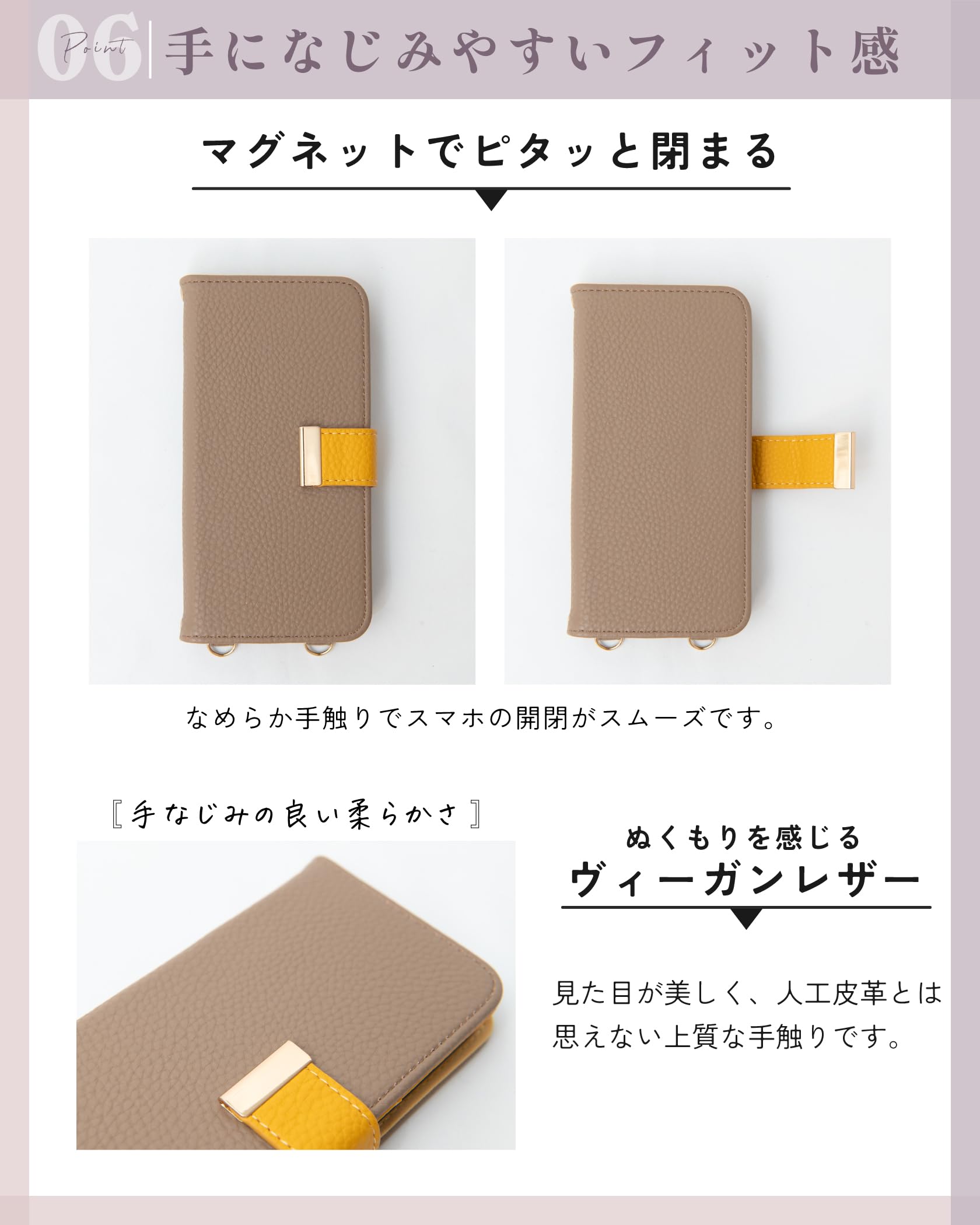 MINTY iPhone16e ケース 手帳型 ショルダー ストラップ バイカラー ライラック×エクリュ