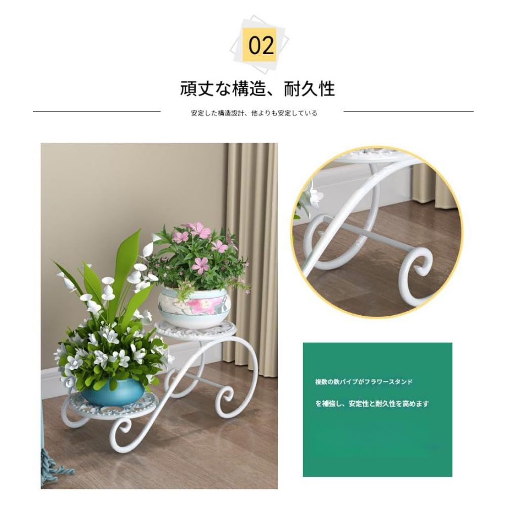 製品説明<br> 1. 多層スタッガード構造で空間を有効活用<br> 二層式と三層式があり、スタッガード構造により、それぞれの鉢に独立したディスプレイスペースを確保できます。狭いスペースでも、多肉植物や大根など、様々なグリーン植物を重ねて配置することで、重なりや圧迫感を防ぎます。また、バルコニーやデスクトップに散らばった鉢植えを整理し、植物を整頓することで、縦方向のスペースを最大限に活用し、ミニ「植物園」を作ることができます。<br> <br> 2. 鉄素材で安定感と美しさを実現<br> 鉄製のフレームはシンプルな形状で、滑らかなラインが特徴です。ブラック、ホワイト、ブロンズなど、様々なインテリアスタイルにマッチします。鉄製のフレームは強度と耐久性に優れ、高い耐荷重性を備えています。植木鉢を置いても揺れにくく、倒れにくい構造です。植物をしっかりと支えるだけでなく、洗練された外観でインテリアの一部となり、グリーン植物をよりスタイリッシュに演出します。<br> <br> 3. 豊富なサイズ展開で、幅広いシーンに対応<br> 3段タイプは225×9×28cm、2段タイプは224×5×20cmと、豊富なサイズ展開です。窓辺やテレビ台の上に置いて、繊細な空間を演出できます。リビングルームのコーナーやバルコニーの縁にも最適です。小さなアパートの装飾にも、広い空間を埋めるスペースにも、ぴったりのサイズが見つかり、様々な空間に柔軟に溶け込みます。<br> <br> 4. 中空デザイン、細部までこだわったデザイン<br> ほとんどの段は中空構造で、空気の循環を促し、水たまりを防ぎ、植物の生育に適した環境を作り出します。同時に、中空形状は芸術的な雰囲気を醸し出し、植木鉢の底部の通気性を確保することで、窒息のリスクを軽減します。細部まで植物をケアし、フラワースタンド自体のデザイン性、実用性、美しさを高めます。<br> <br> 5. 簡単設置で、手軽に模様替え<br> お時間のある時に、フラワースタンドを設置してお気に入りの植物を置くだけで、お部屋に活気が生まれ、空間の美化も簡単に実現できます。温かみのあるグリーンコーナーを、シンプルかつ楽しく演出できます。