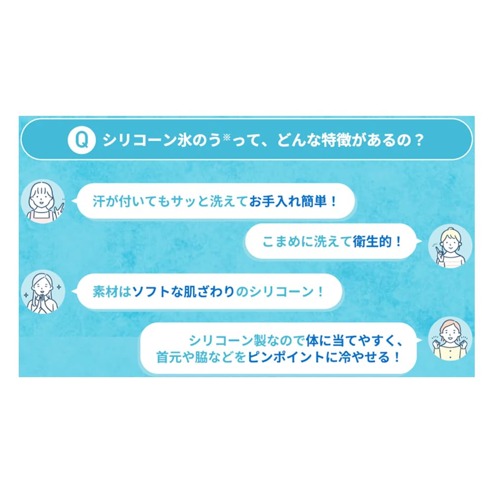 ポケットサイズでどこにでも気楽に持ち運べる、シリコーン氷のう。<br> シリコーン製の氷のうで肌に優しい。<br> 製氷時に倒れにくいスタンド付き。<br> ポケットにも入りやすいコンパクトサイズ。<br> お子様でも使いやすい。