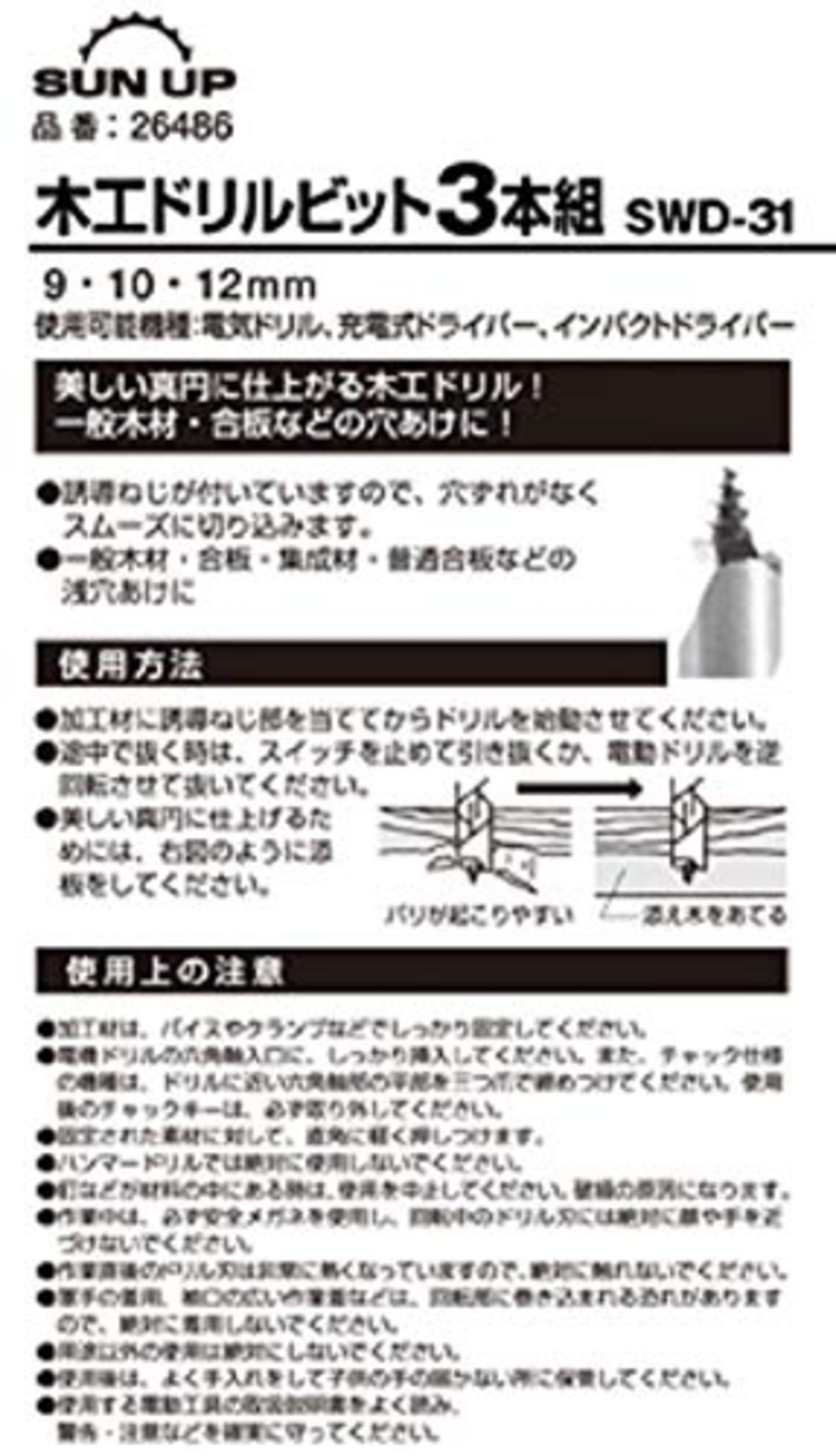 近与(KONYO) SUN UP 木工ドリルビット 3本組 SWD-31