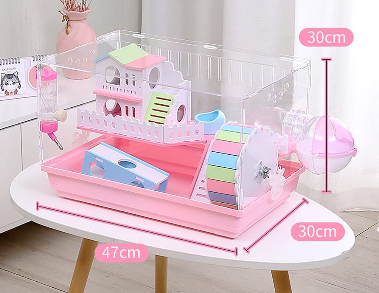 ★【サイズと適用場所】 長さ47cm×奥行30cm×高さ30cm。行動範囲がさらに広がっています。ハムちゃんが楽しんで住んで遊ぶことができます。お客様はハムちゃんがゆったりとくつろぐ様子などもよく観察できます。