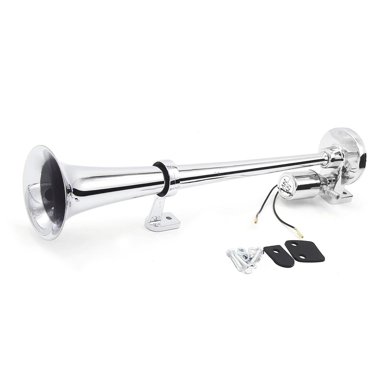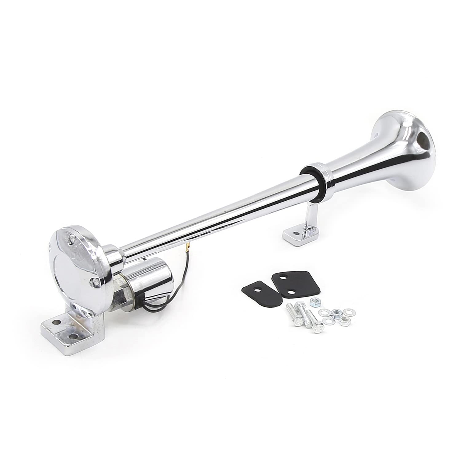Baugger トラックホーン、シングルチューブトランペット電気ホーンクロームエアホーンスピーカーキット150dB 12V / 24Vユニバーサルトレイントラックローリー用 Silver