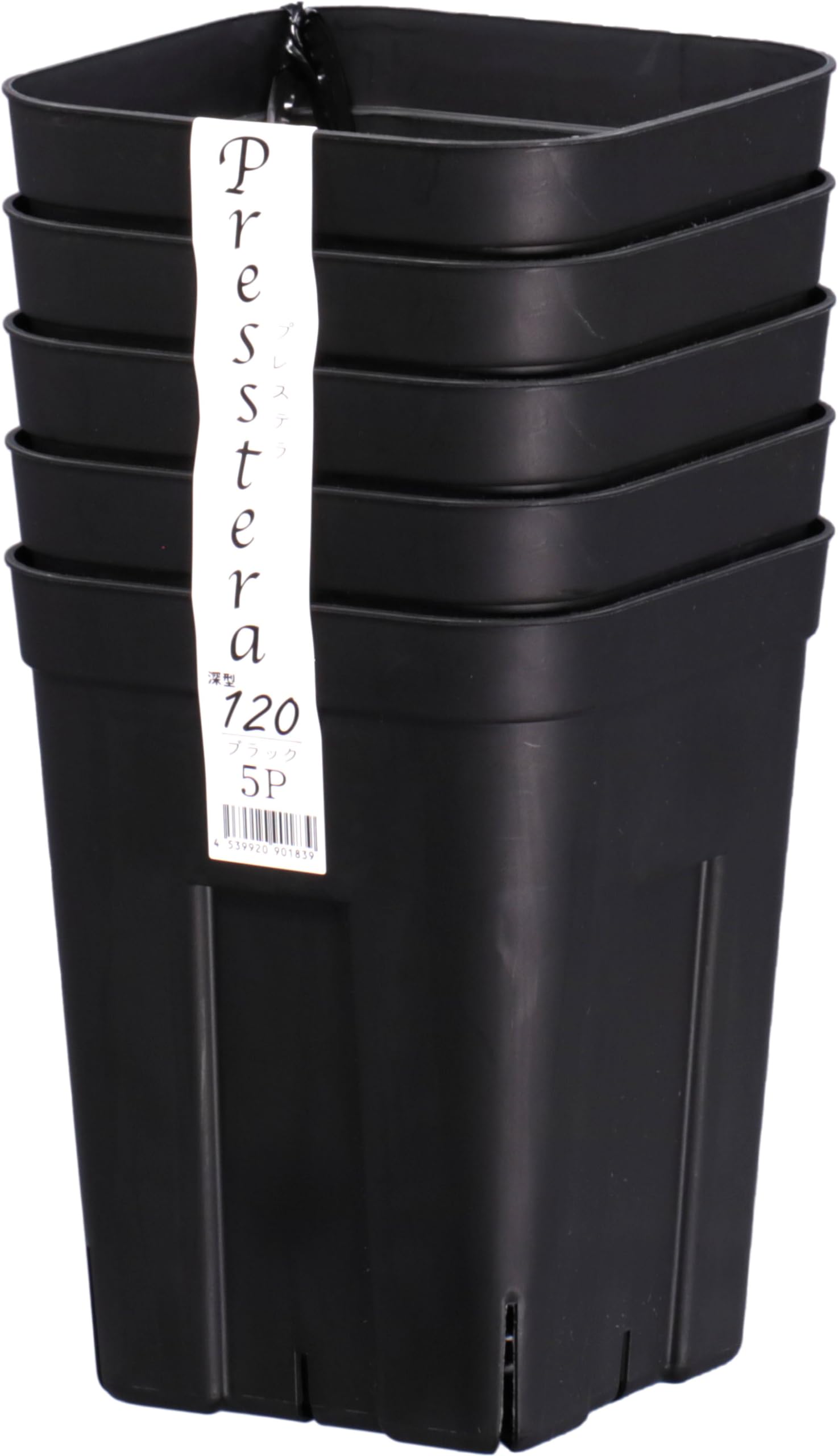 日本ポリ鉢 プレステラ深型120 5個組 ブラック プラスチック製 硬質ポット スリット入り アガベやハオルシアなどに