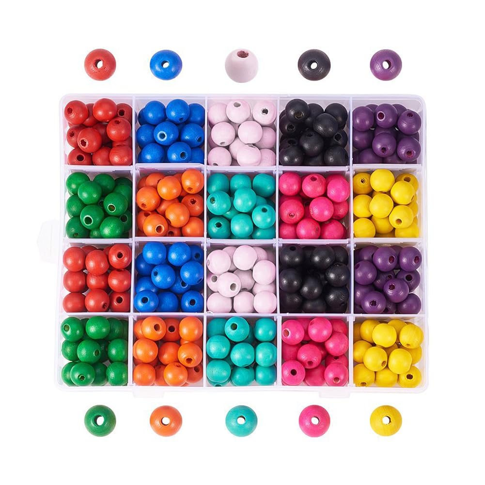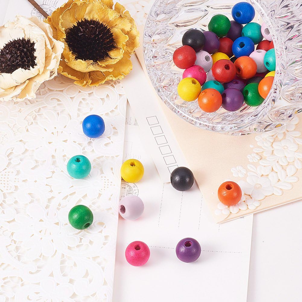 PandaHall 約400個セット ウッドビーズ 14mm 10色 木製ビーズ ミックス 染め カラフル カラフル 丸型 ジュエリー用 ネックレス ブレスレット DIY アクセサリーパーツ