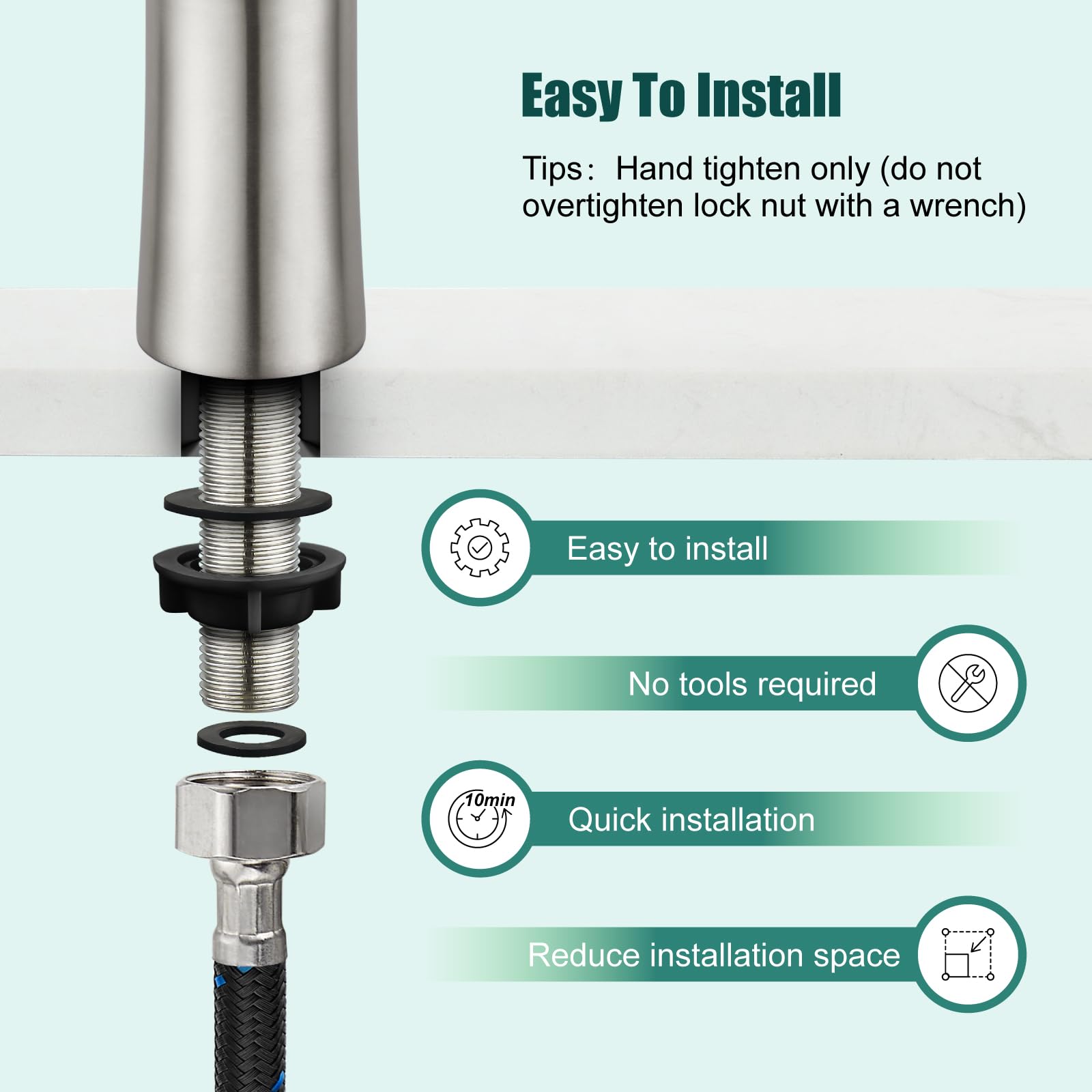 特徴: 冷水蛇口は、2.4インチに拡張されたネジパイプのみで、あらゆる長さのコネクタに便利に取り付けることができます。すべてのコネクタは米国標準の3/8インチスレッドです。また、オス3/8インチ - メス1/2インチアダプターが付属しています。