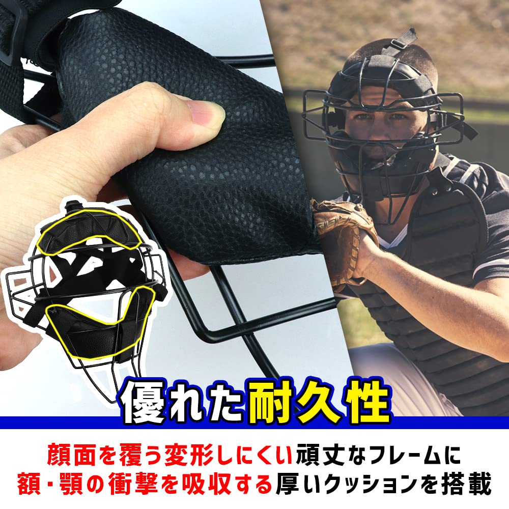 【野球チーム推奨】 フェイスガード 顔面保護 頑丈フレーム 肉厚クッション 通気性 軽量 大人 ソフトボール 野球 キャッチャー