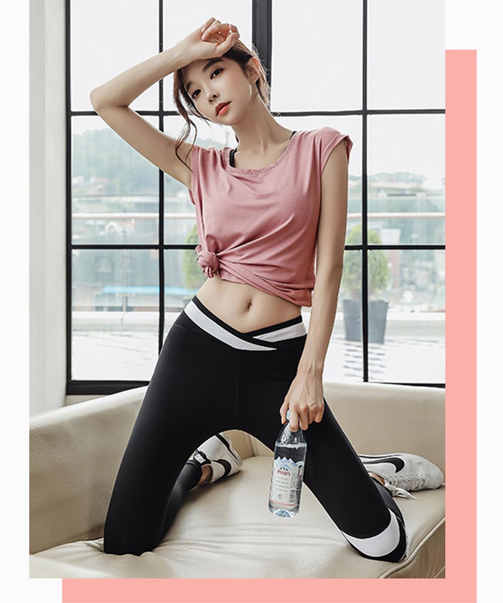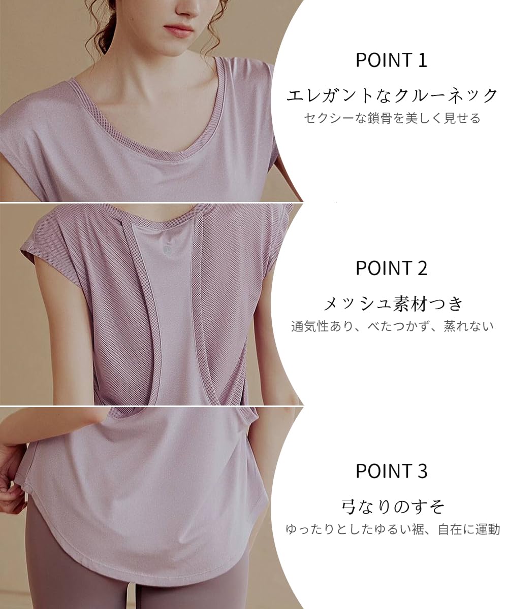 [KAOINGAN] ヨガウェア レディース スポーツTシャツ ゆったり フィットネスウェア トップス ストレッチ 吸汗速乾 メッシュ通気 ピラティス 美シェイプ 丈長め ジムウェア ランニング A8150