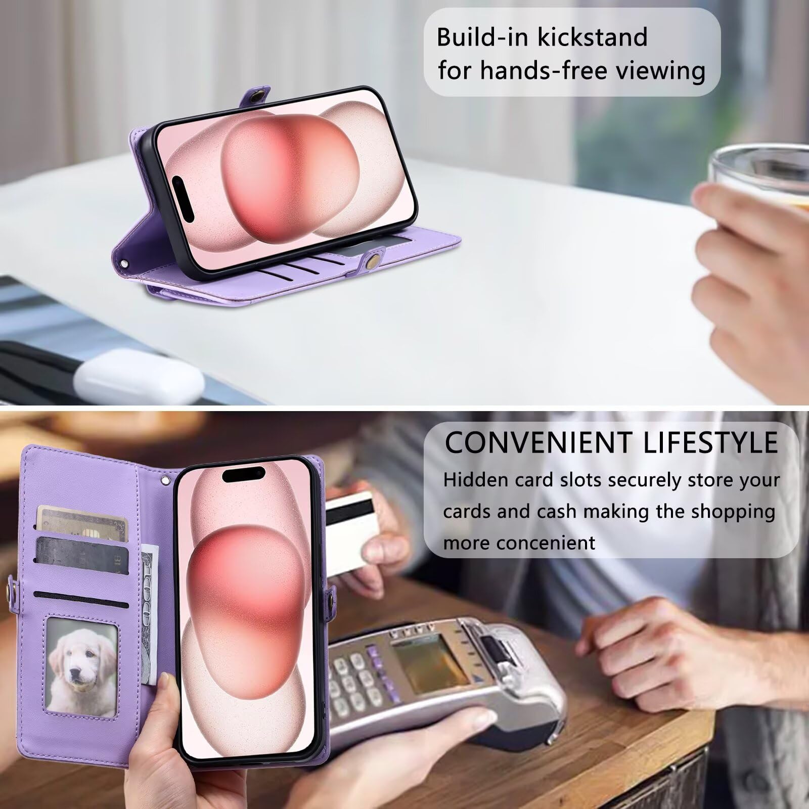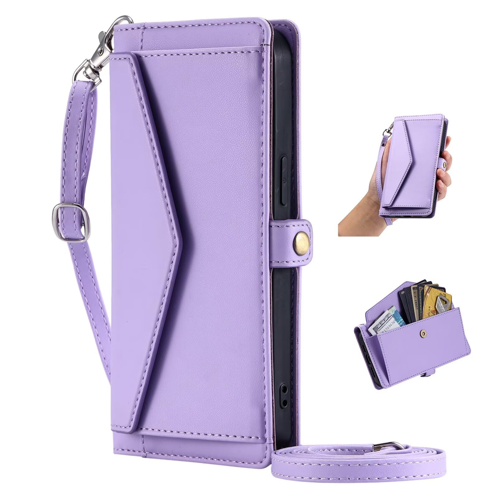 HAOFUGUI Compatible with Samsung Galaxy J530 / J5 2017 / J5 Pro 2017 ケース, 財布型 カード収納携帯電話ケース, ショルダーストラップ付き スタンドPUレザー人気おしゃれCase Cover, 軽量 薄型落下防止 耐衝撃 Phone Case-パープル