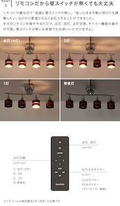 注意事項\リモコンタイプの照明器具は調光器に対応しておりません。リモコンが付属している照明器具には、調光調色機能が付いた電球は使用できません。傾斜のある天井、傾斜を合わせた舟底天井、凹凸のある天井ではご使用いただけません。必ず平らな天井に取り付けて下さい。保証の対象外となります。同じリモコンが付属している商品を複数台使用した場合、距離によっては1つのリモコンで他の照明も作動する可能性があります。