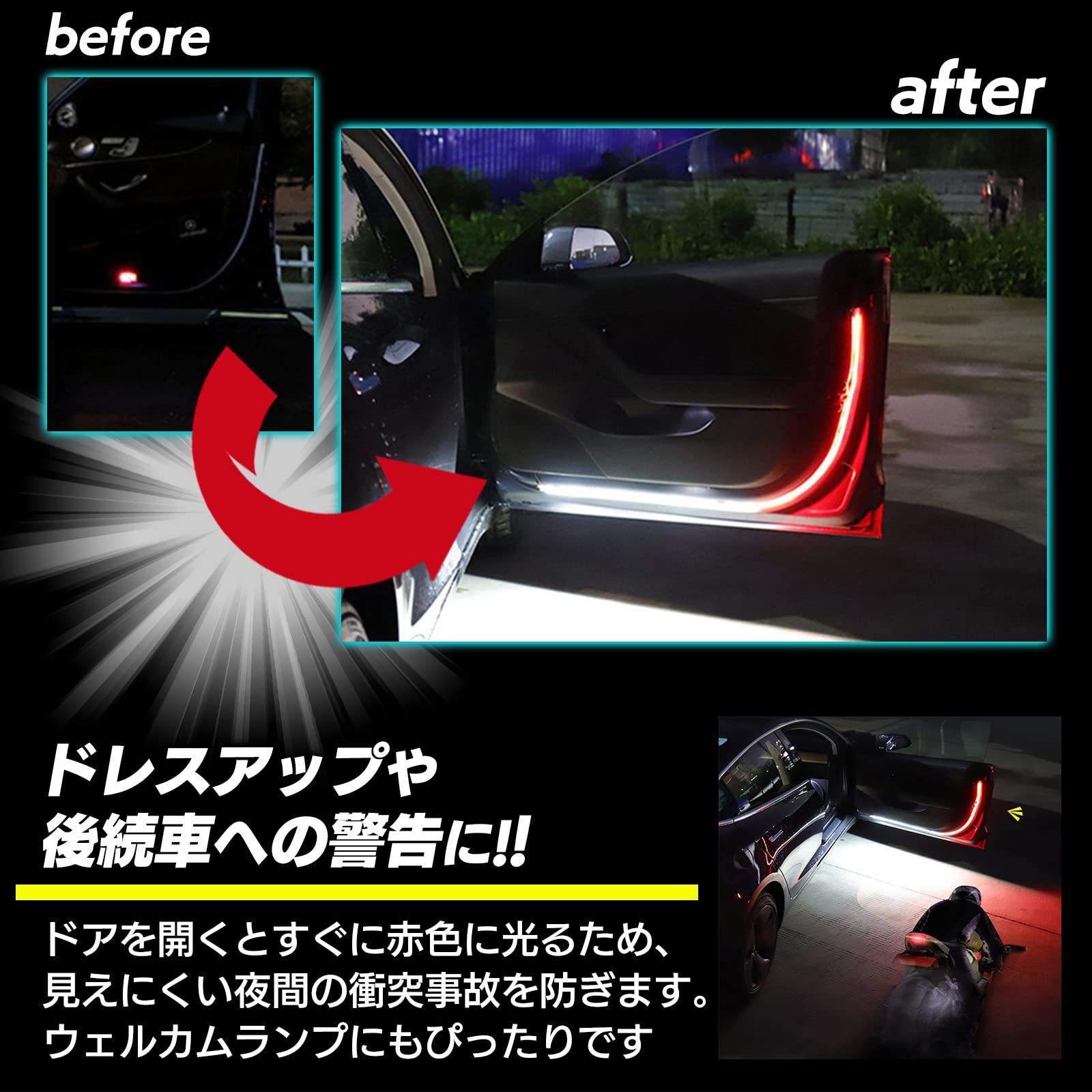Meliore LED テープ ライト ドア ドアランプ フットランプ 車用 警告灯 ストロボ シーケンシャル 流れる 衝突 追突 防止 カーテシ 足元 照明 シリコン 防水 社外 レッド ホワイト 2本