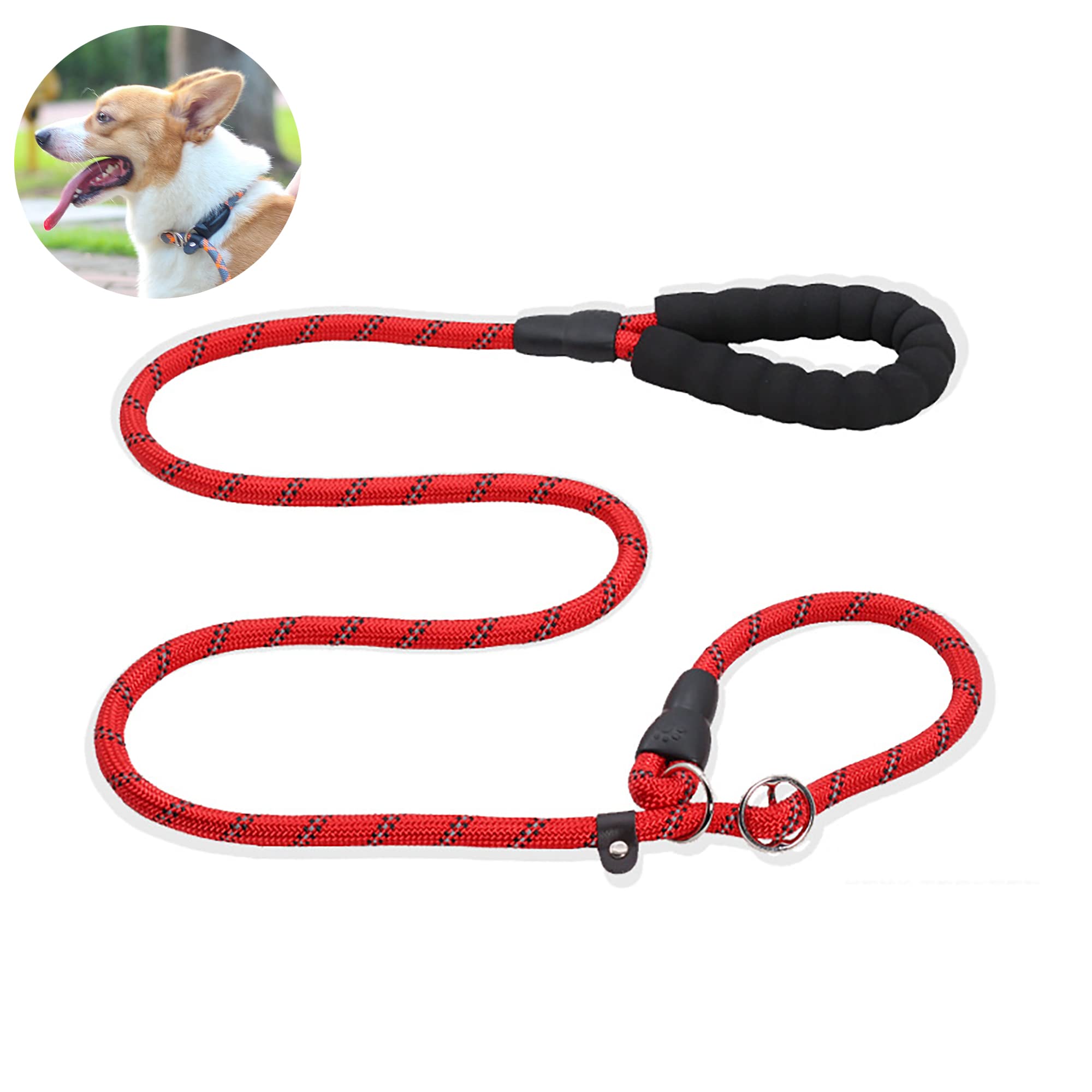 joonolu犬用リード リード 犬 ドッグ スリップリード【改良型】小型、中型、大型犬用リード 丸ロープ 訓練リード ロングリード 3M反射材料 しつけリード 引っ張り防止 絡みにくいのトレーニングリード ロック式360°回転できカラビナフック スポンジ取っ手 軽量で屋外の散歩や遊びに最適 犬用品(1.5m, レッド)