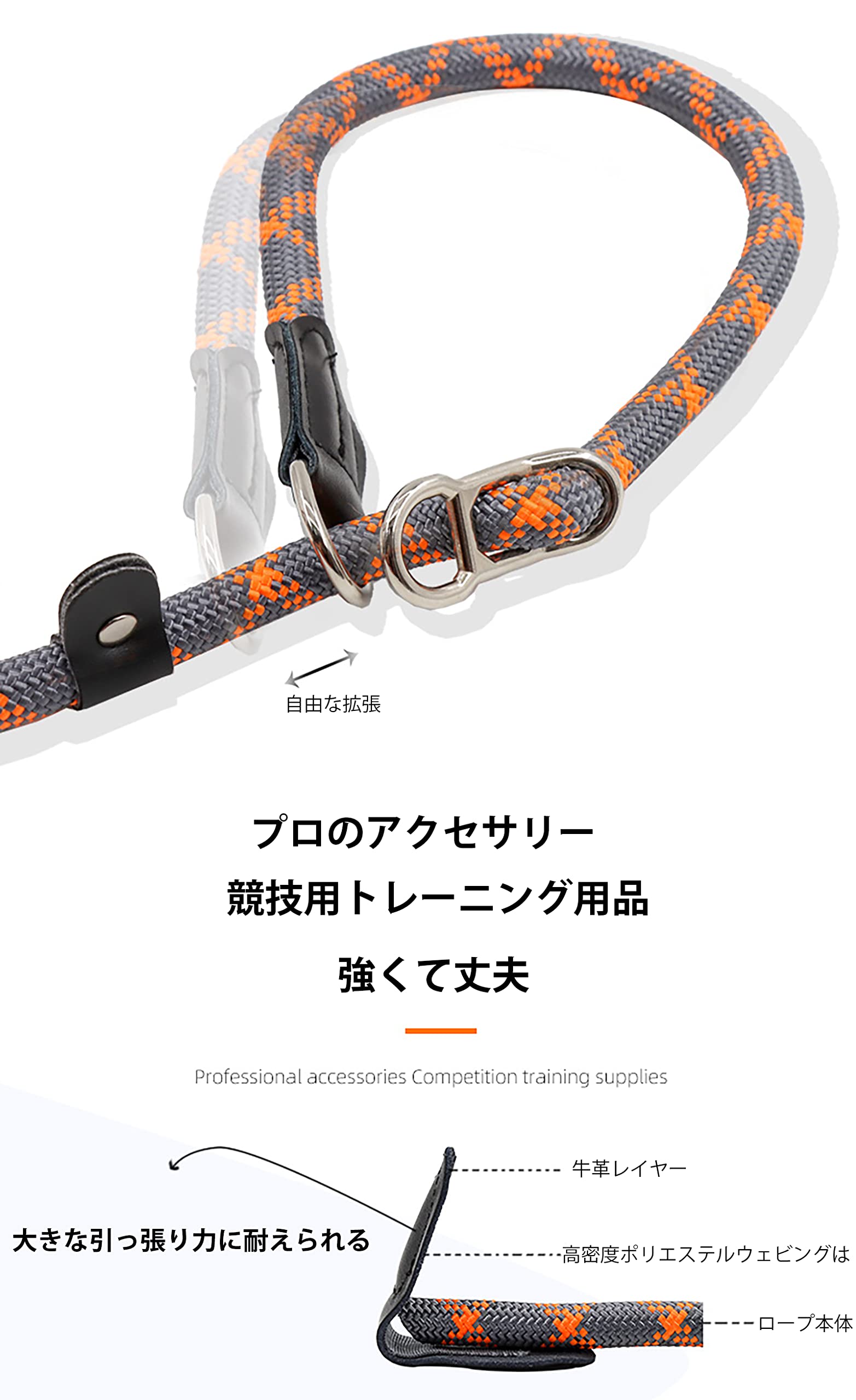 【実用性高い】このリードは首輪は要らない、リードと首輪が一体になっている便利な丸ロープリードです。そして首輪部分のサイズガ自由に調整でき、首輪が苦手犬への散歩用リードとして使いできます。